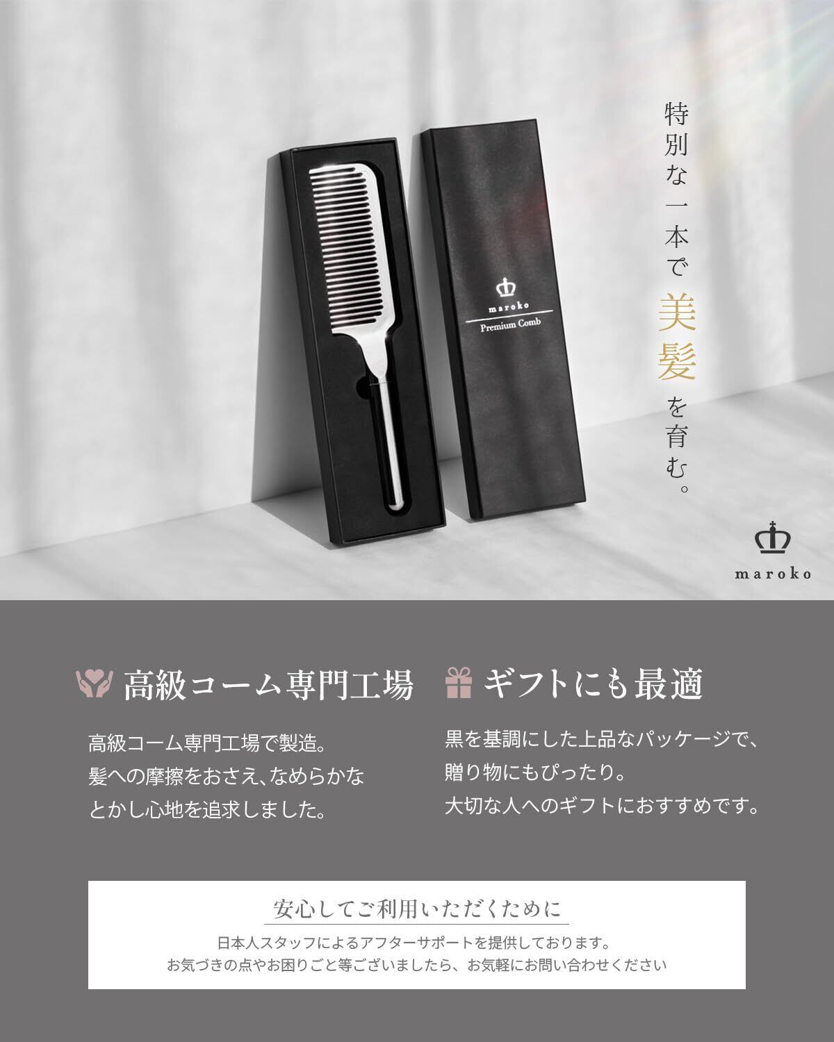 【高級コーム専門工場で製造】 当店のコームは高級コーム専門工場で製造しており、使い心地にご満足いただけない場合や、万が一製造上の不具合があった際には、無償で返金・交換対応いたします。安心してお試しいただけます。