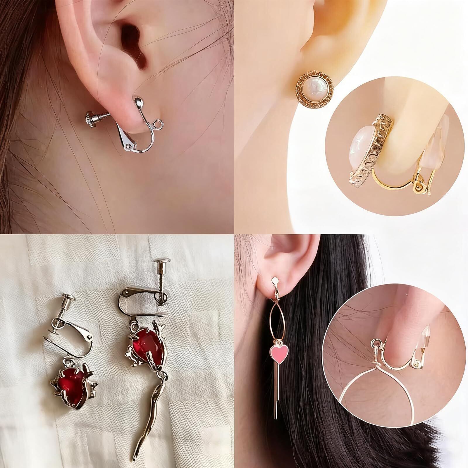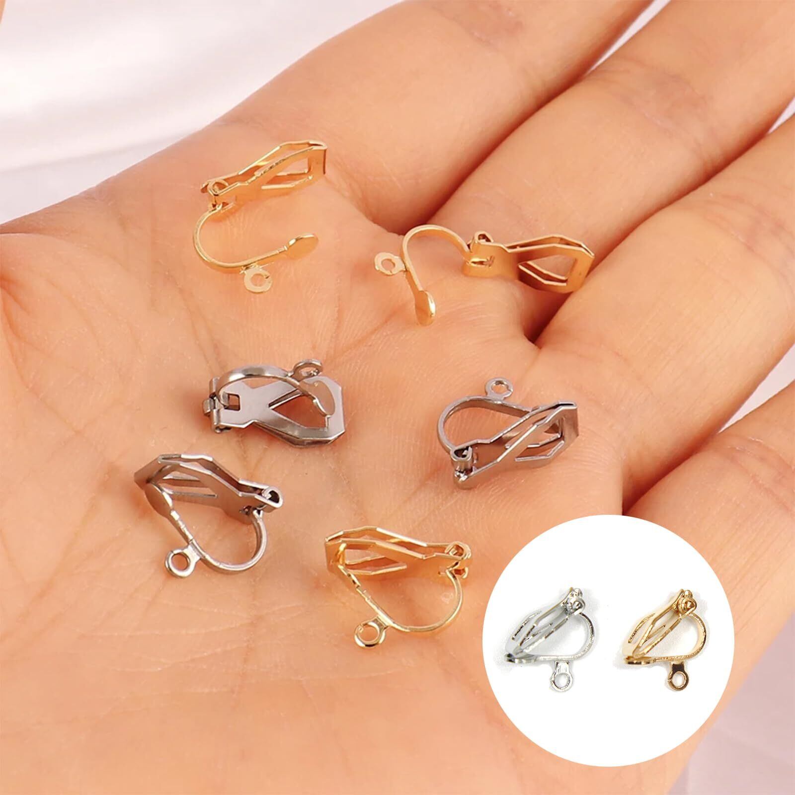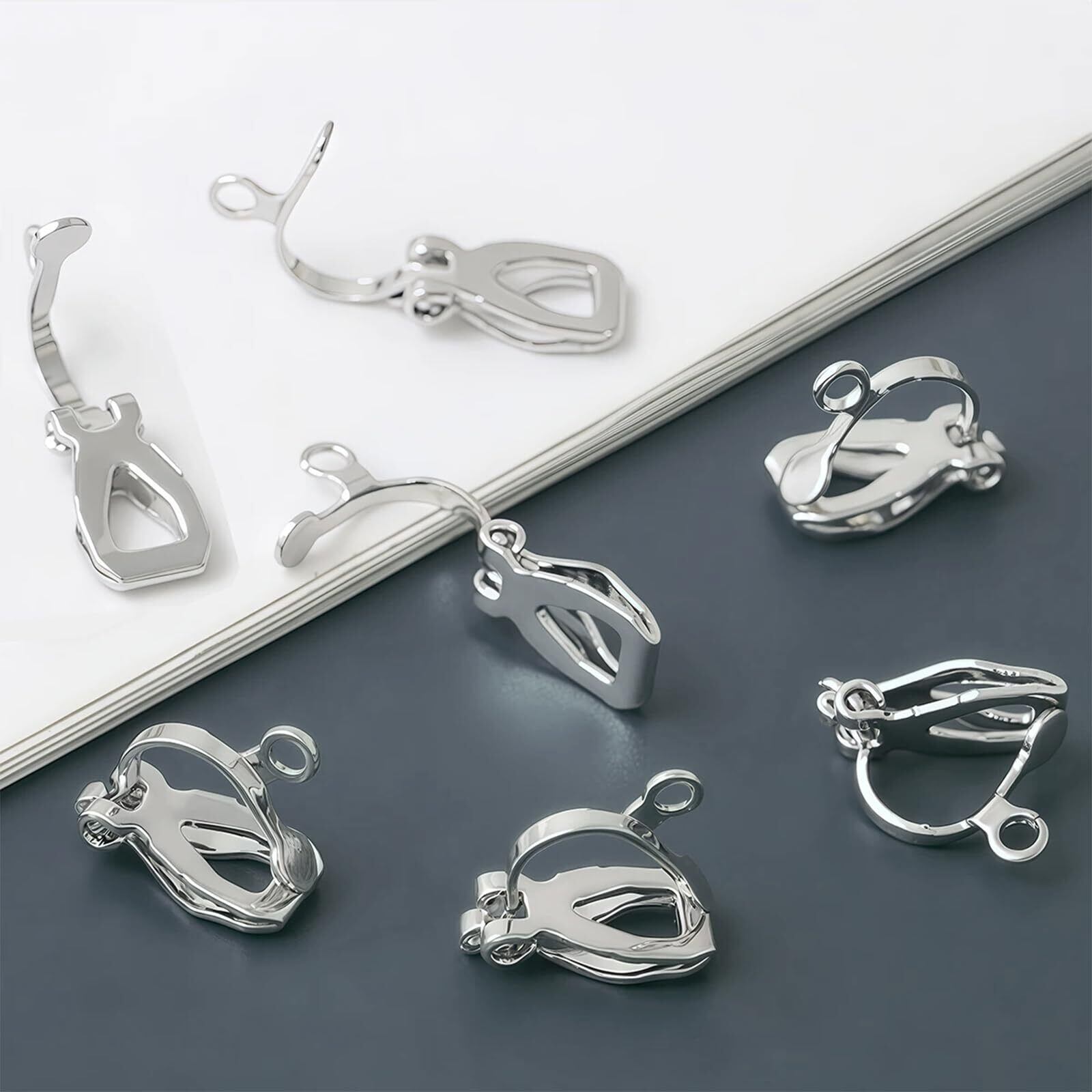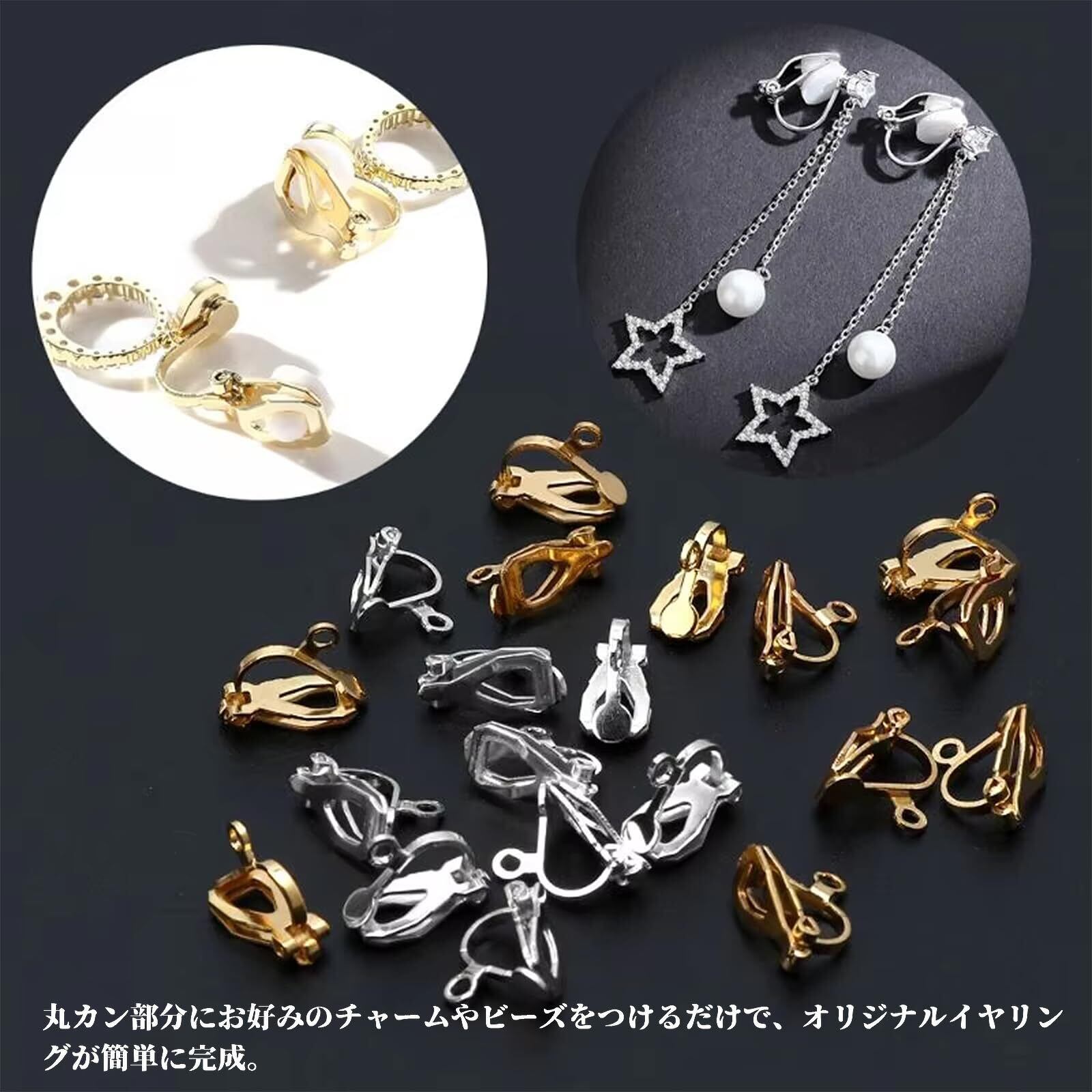 【ハンドメイドに最適なクリップ式イヤリングパーツ】耳に挟むだけで装着できる、丸玉カン付きイヤリングパーツとシリコンカバーのセットです。ピアス穴がなくても楽しめる、人気のハンドメイド用金具です。