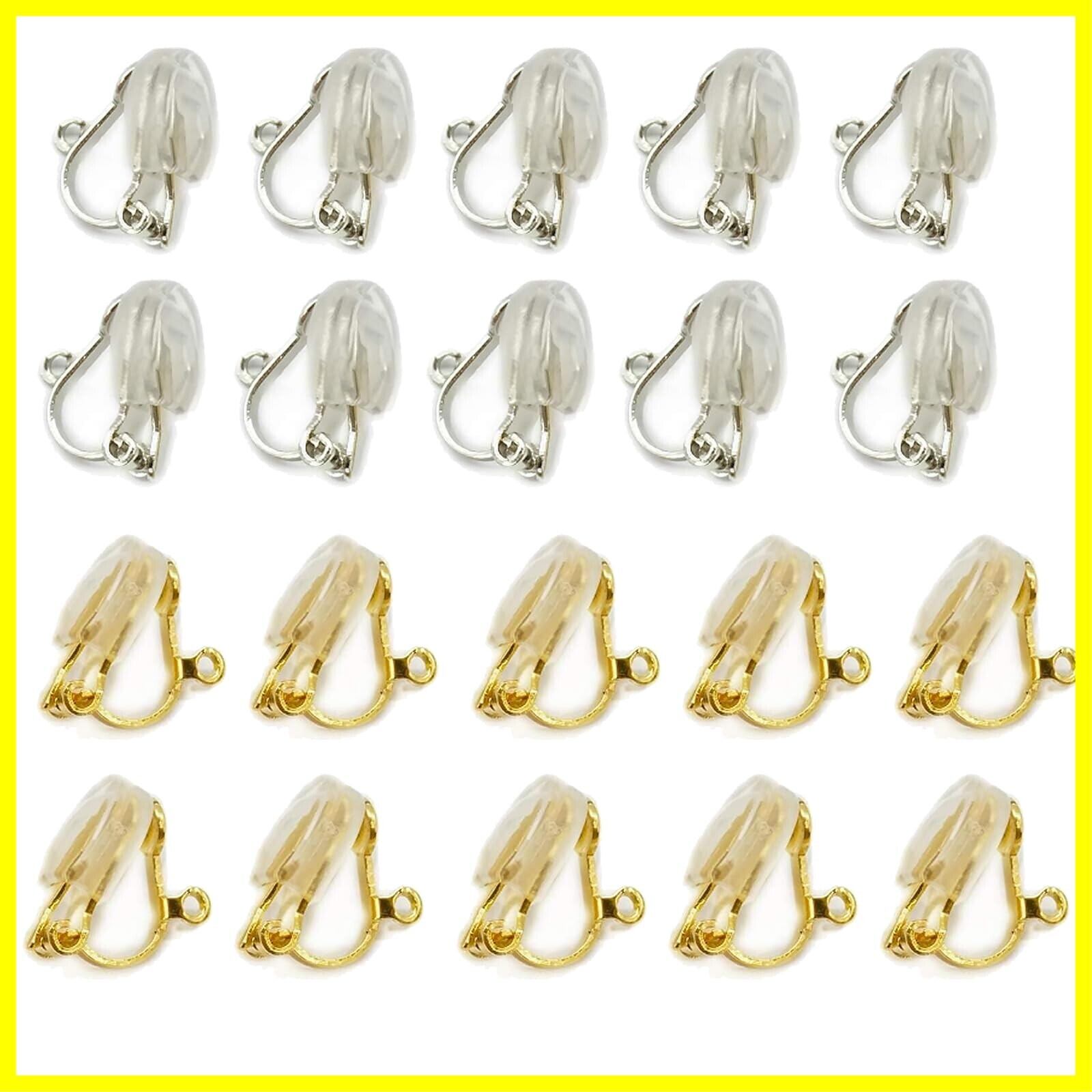 DENGUJD イヤリング パーツ クリップ式 丸玉 クリップ式 カン付き シリコン カバー カバー 付き 2色 10ペア20個 (ゴールド・シルバー)
