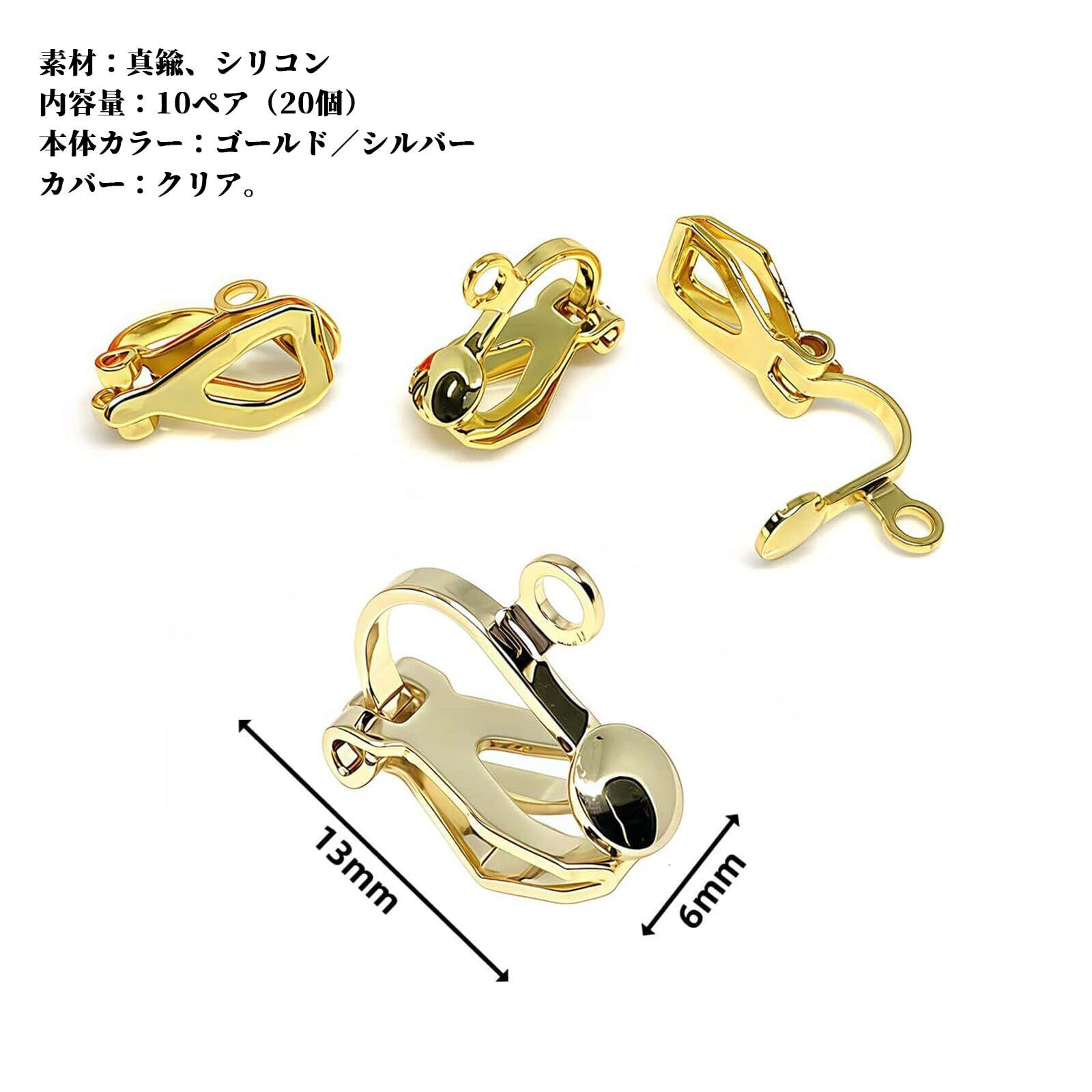 【素材・仕様】素材:真鍮、シリコン 内容量:10ペア(20個) 本体カラー:ゴールド/シルバー カバー:クリア。サイズは画像をご参照ください。