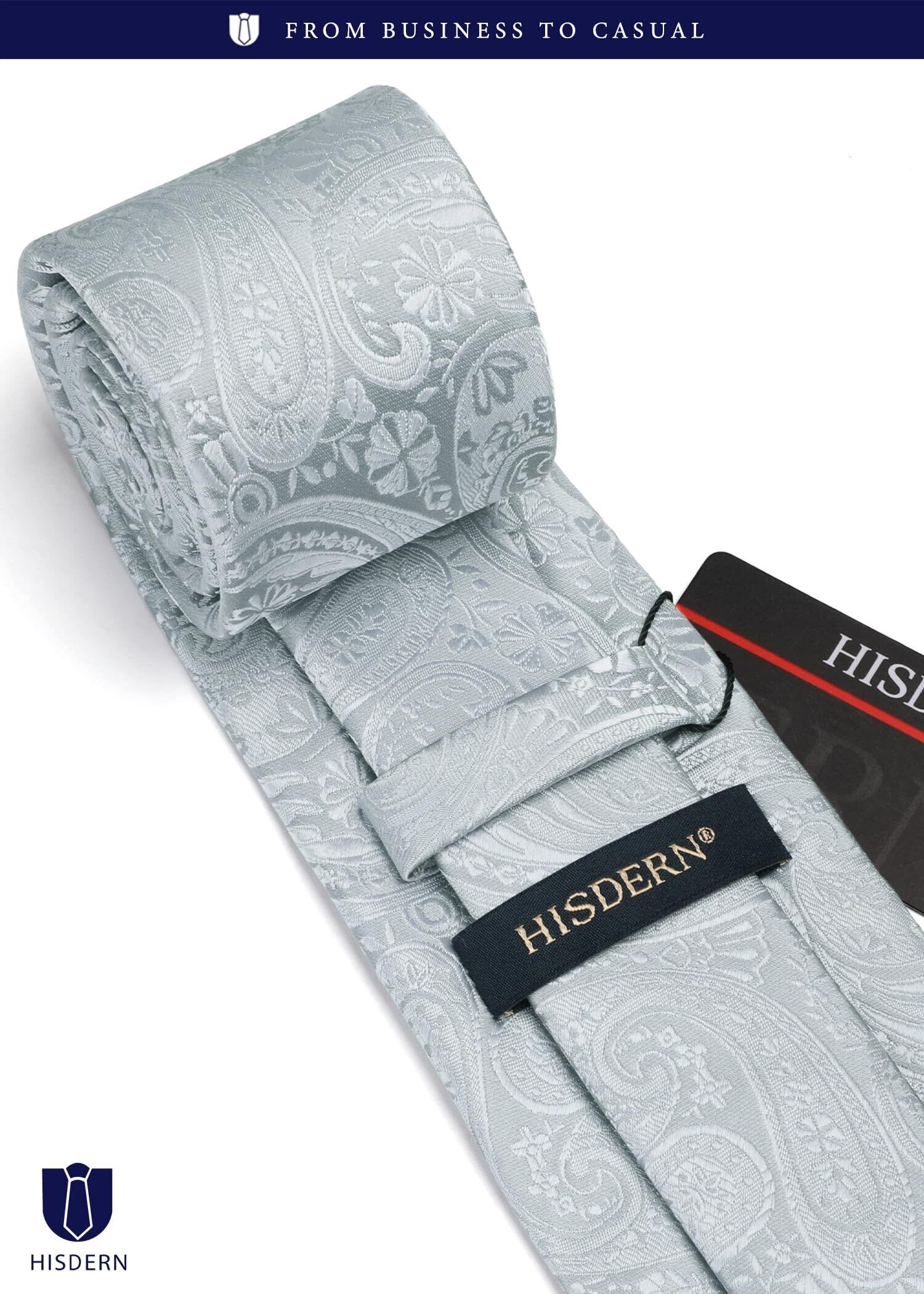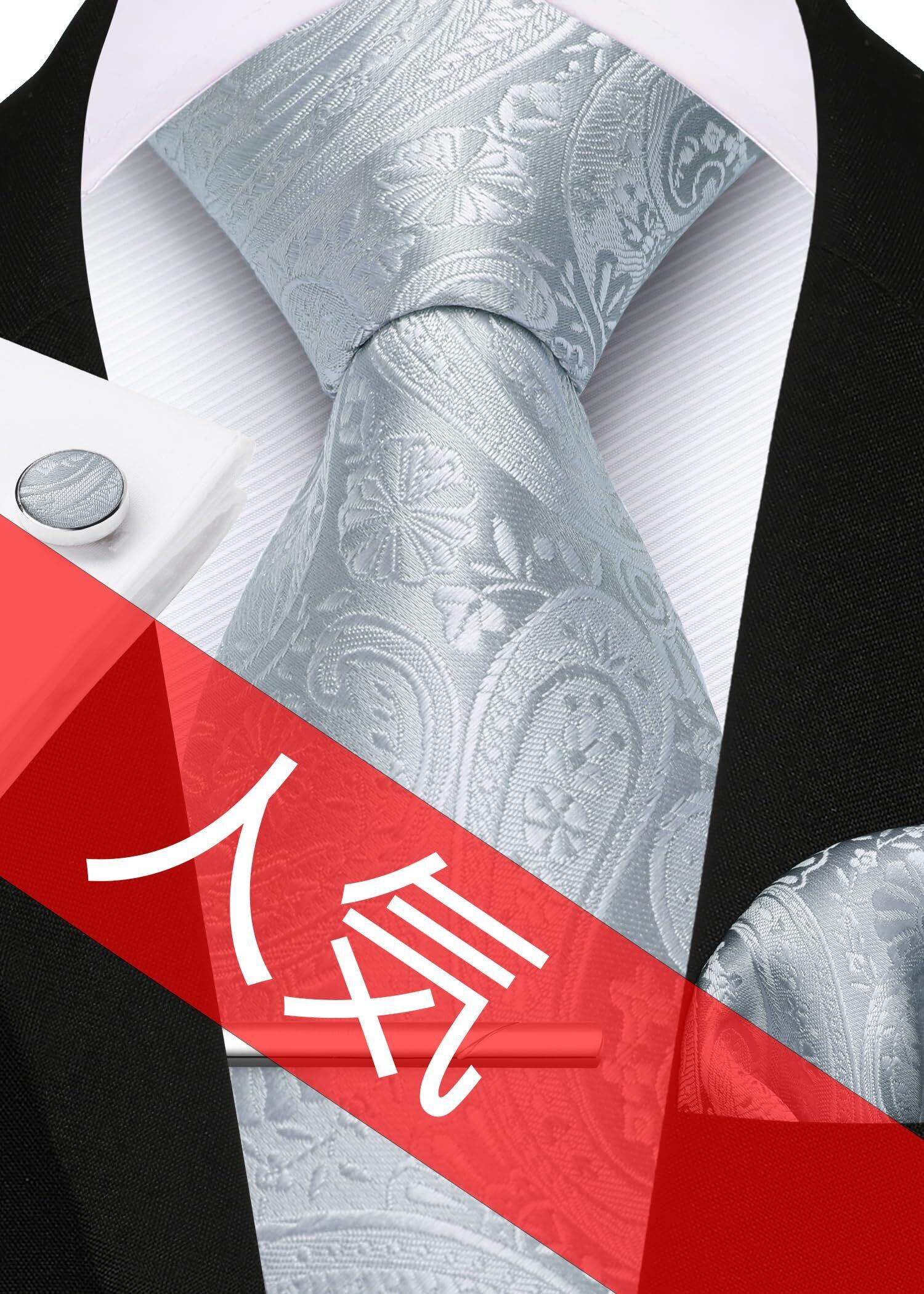 [HISDERN] A4-02 フォーマル ネクタイ チーフ タイピン カフスボタン 4点セット シルク メンズ 幅8.5cm ブランド品 結婚式 就活 入学式 卒業式 サラリマン 44柄