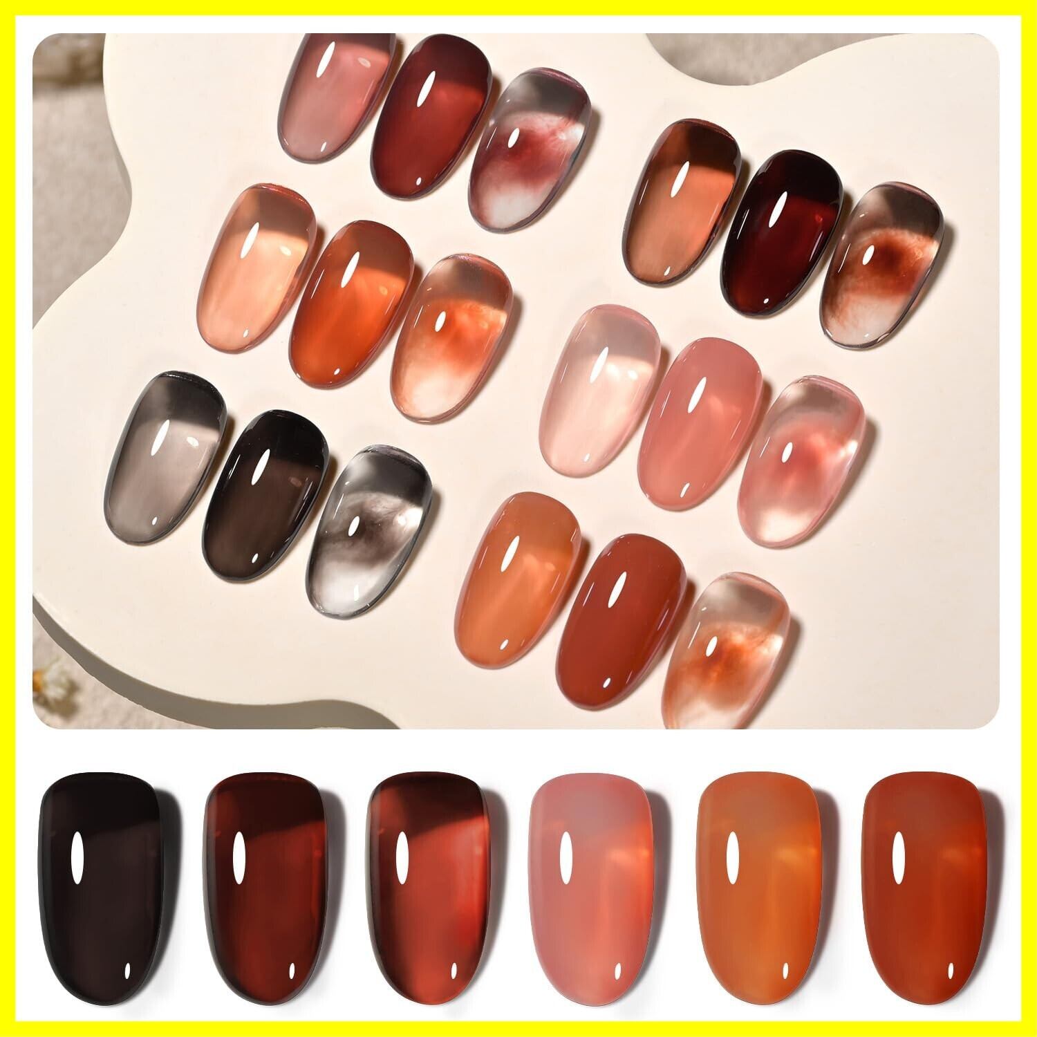 GAOY ジェルネイル カラージェル 6色セット ブラウン レッド ヌード ピンク シアーカラー ジェルネイルキット セルフネイル サロン級