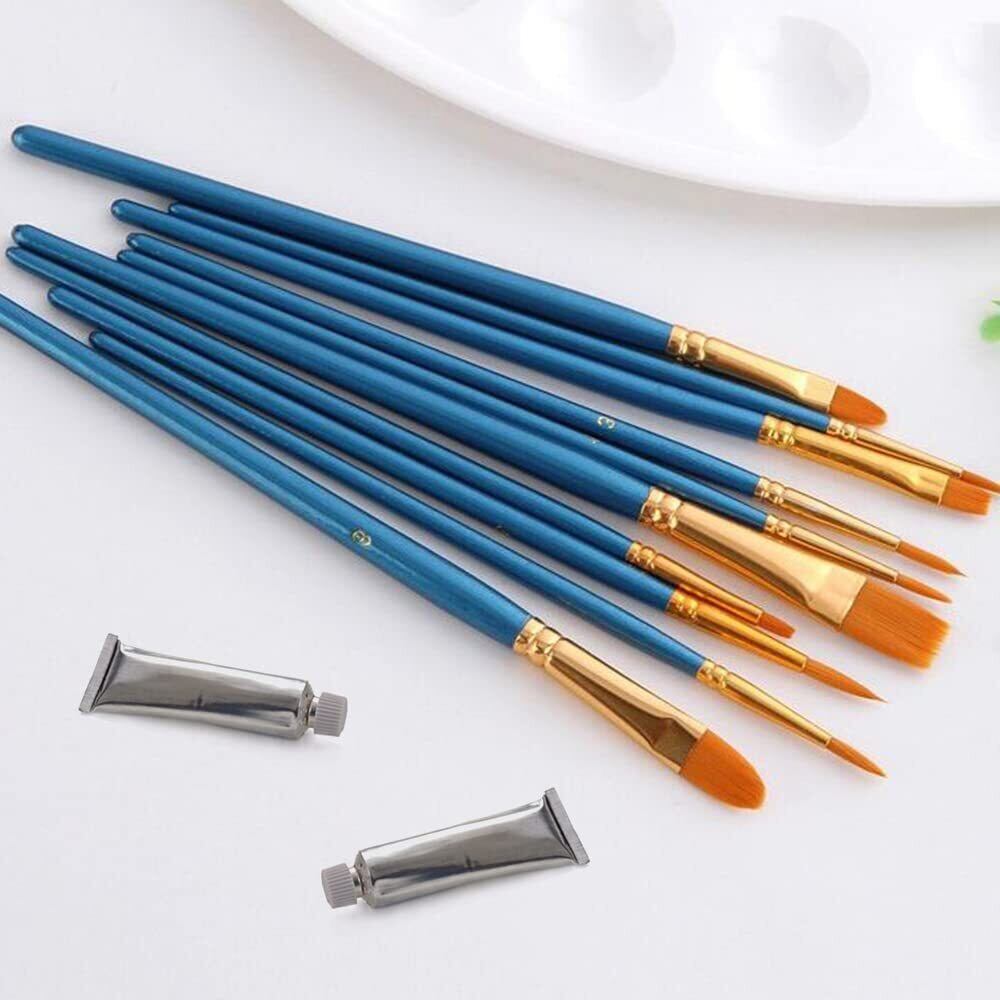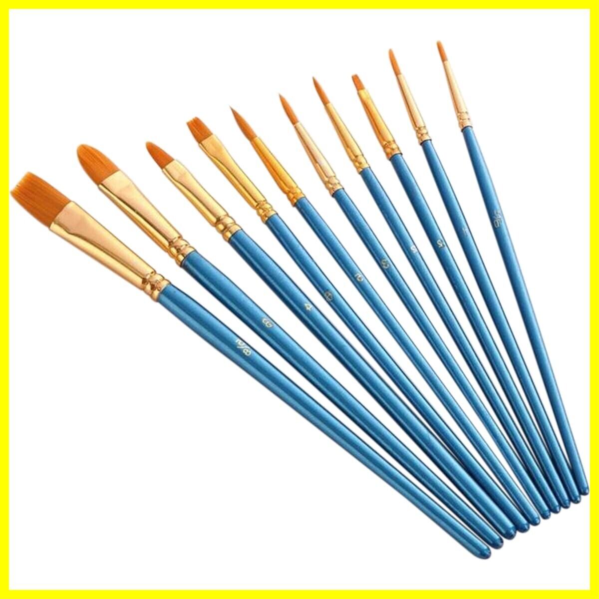 水彩筆 画材筆 面相筆 ペイントブラシ 10本 アクリル絵の具 平型筆 丸筆 ナイロンの毛 画筆 短毛筆(10本セット)