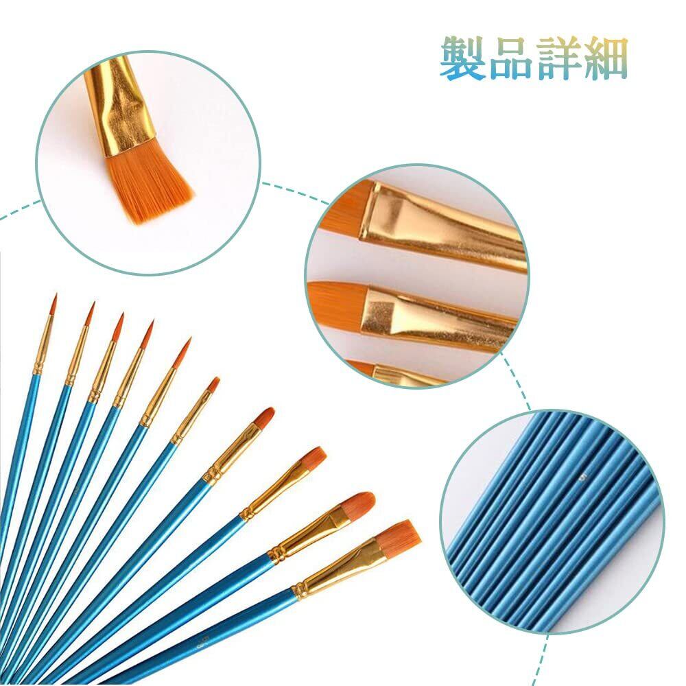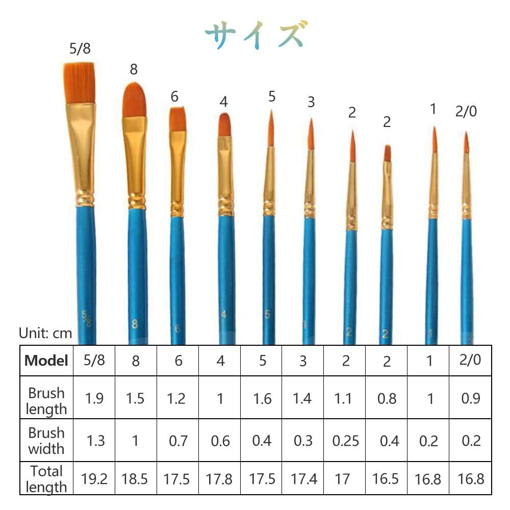 【セット内容】10本 画筆套装。異なるタイプ、異なる形 、各種の絵画の需要を満たす。