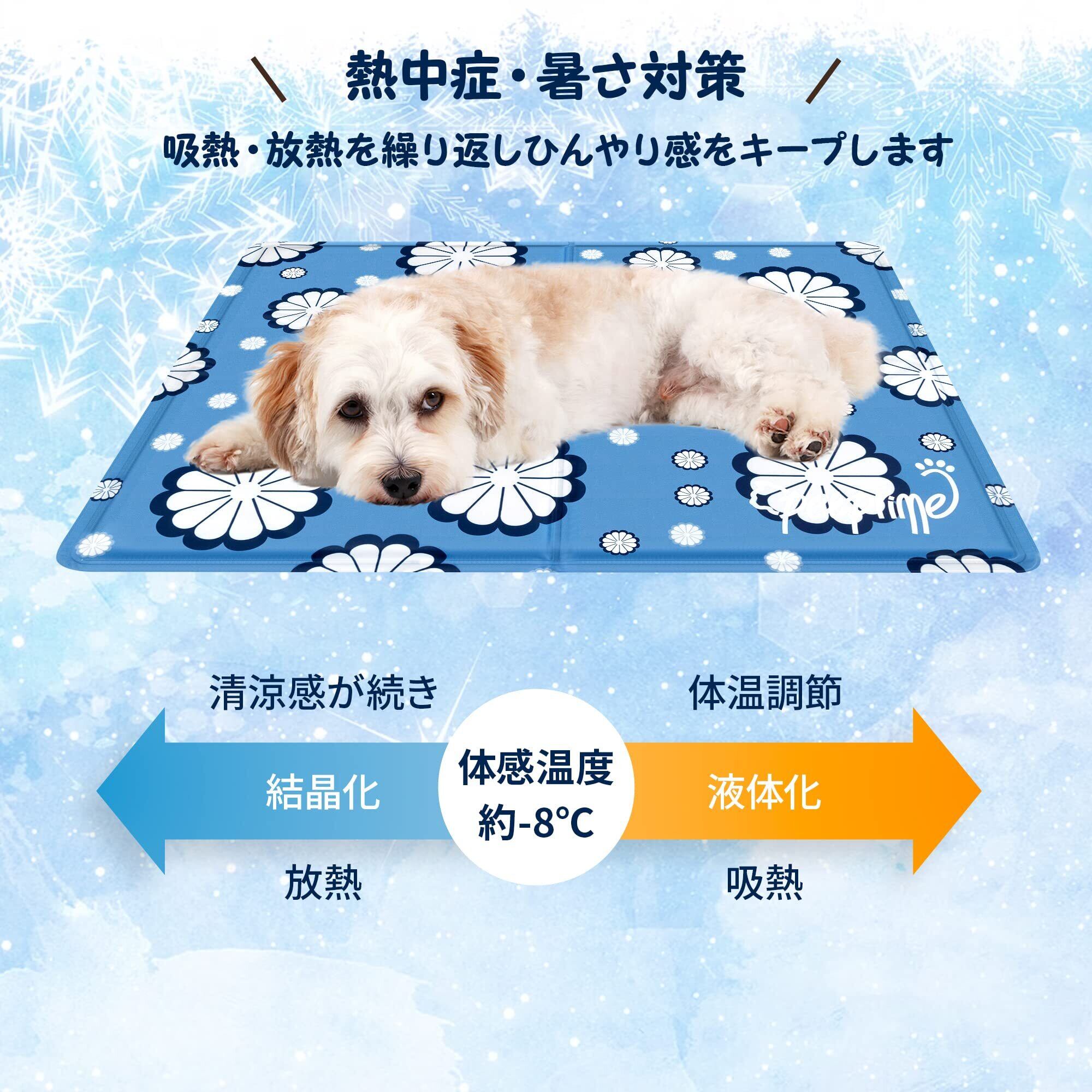 【- 8℃涼感マット】乗るだけでひんやりとする清涼感に優れた素材を採用しております。体感温度を8℃下げる、暑さに弱い犬や猫にピッタリの熱中症対策ペット冷却マットです!夏連日続く猛暑でも気持ちよく眠れます。