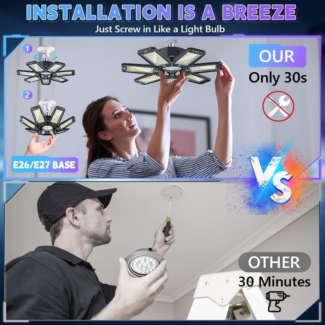 長持ちする明るさ:最大16,000lmの高輝度照明、最大50,000時間の寿命、市場に出回っている通常のガレージライトよりもはるかに高い輝度と寿命で、優れた熱放散ABS+PC素材で設計されています。耐久性と信頼性の高い使用。