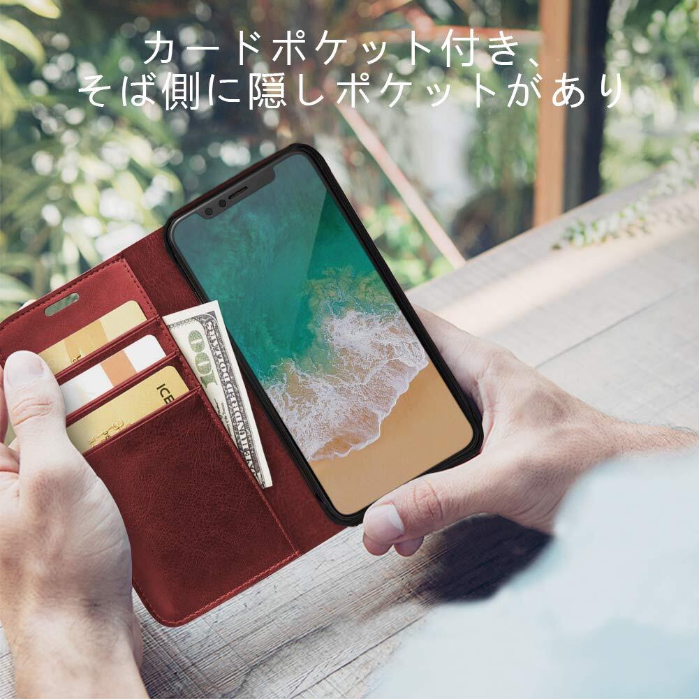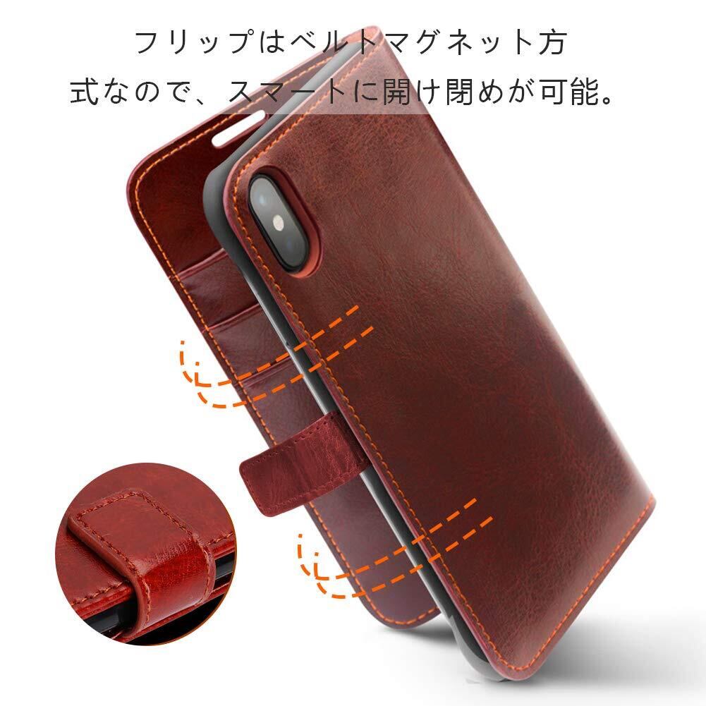 Tgaoleyd 対応 iphone X/XS 用のケース 手帳型 財布型 サイドマグネット式 スマホケース 薄型 カード収納 スタンド機能 PUレザー TPU すり傷防止 指紋防止 衝撃吸収 手帳 レザー 全面保護 360°保護 耐摩擦 人気 携帯カバー 茶 D24-80