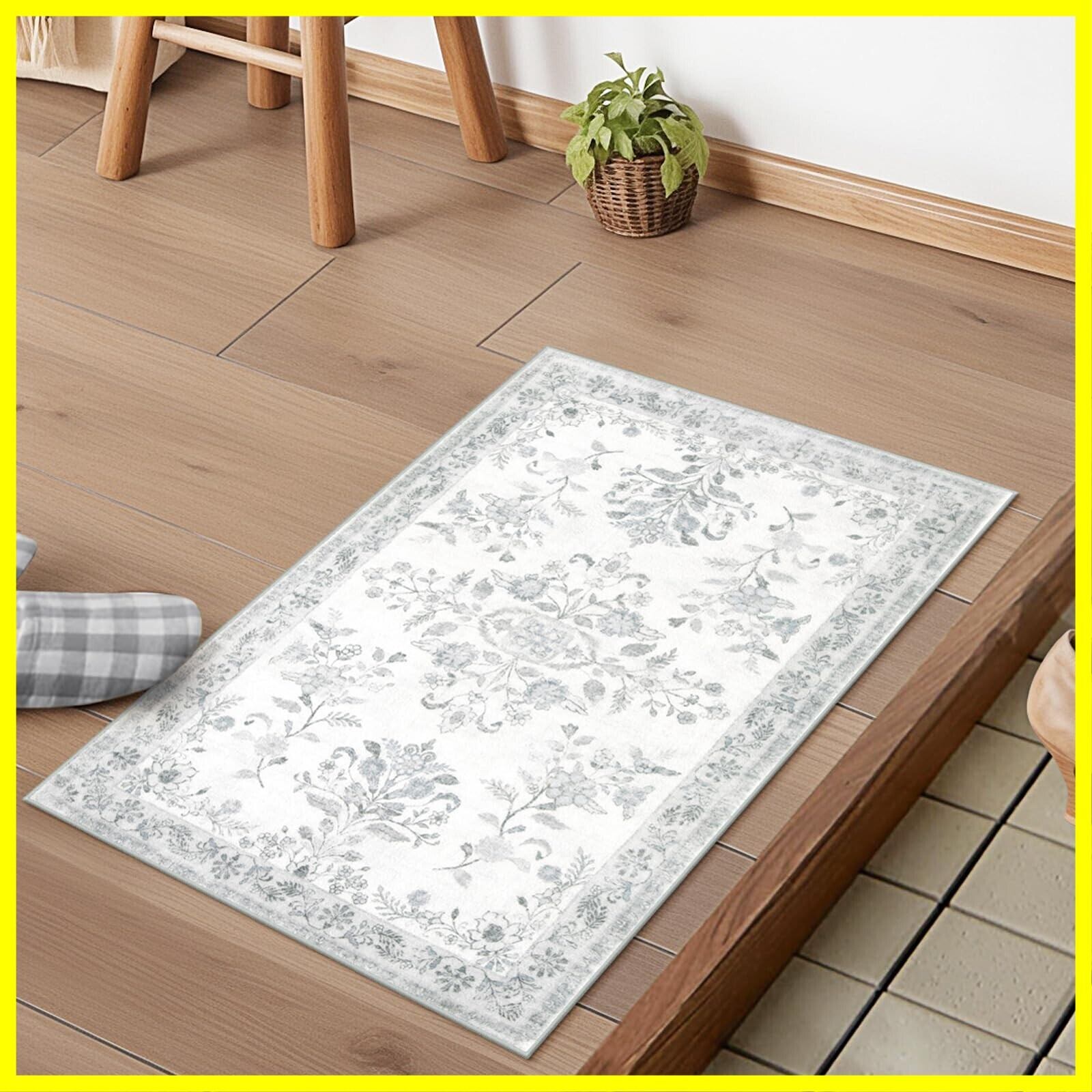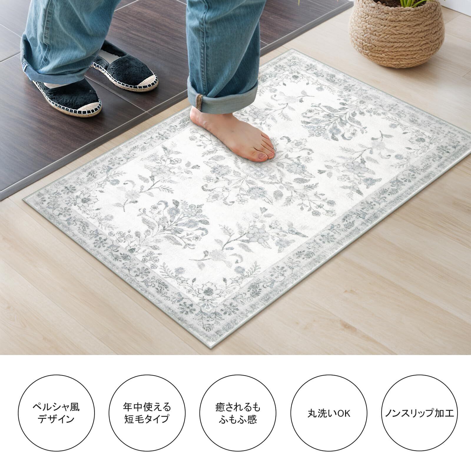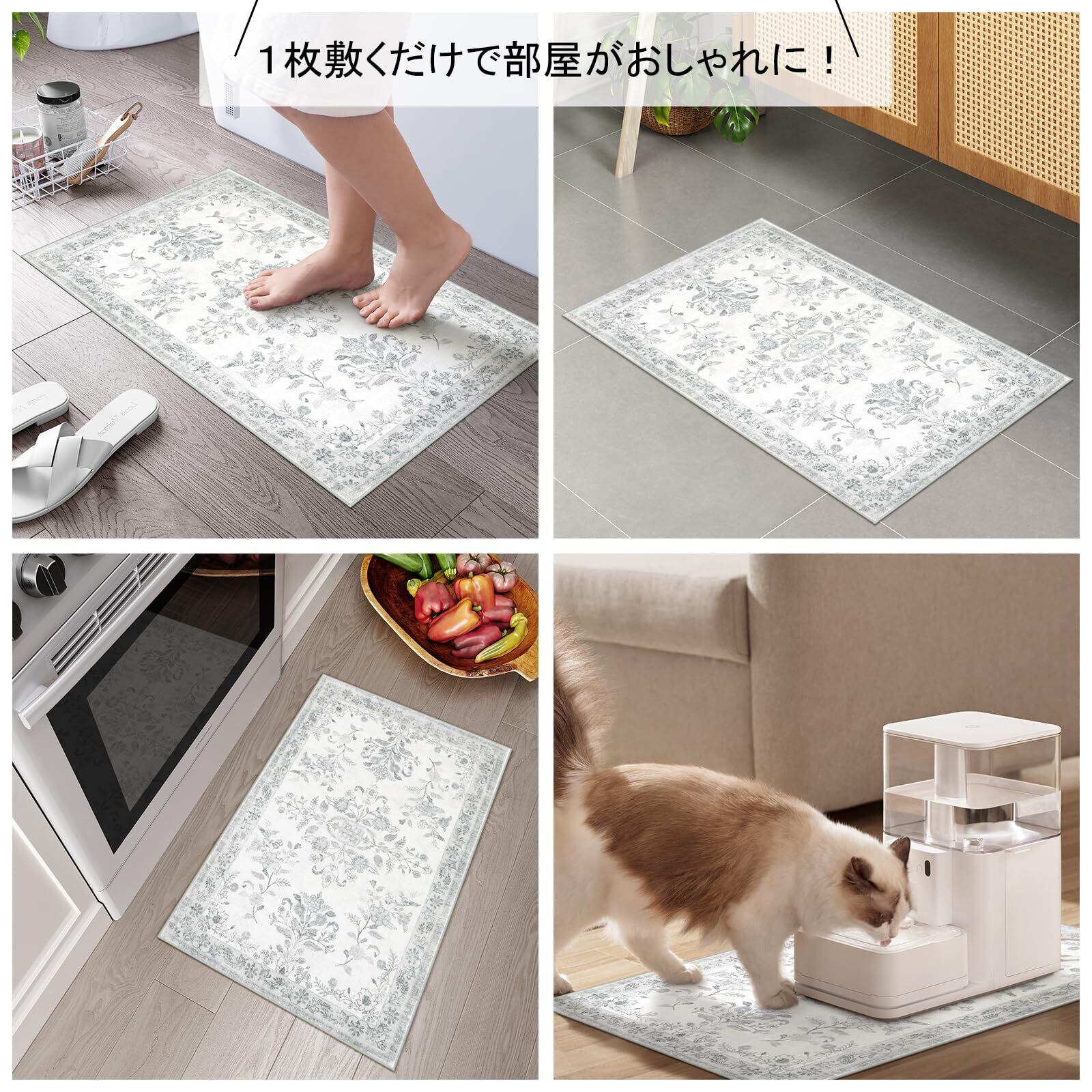 HAOCOO 玄関マット 室内 ペルシャ風 ラグマット 洗える 50х80cm 小さい おしゃれ 長方形 滑り止め 低反発 防音 屋外 泥落とし オールシーズン適用 耐磨耗性 軽量 花柄 ライトグレー