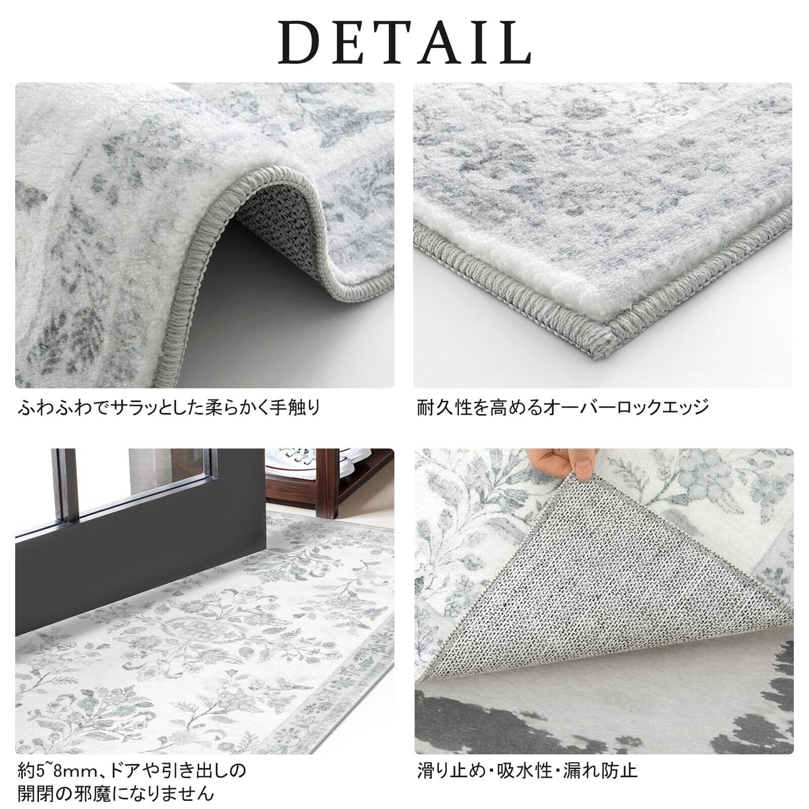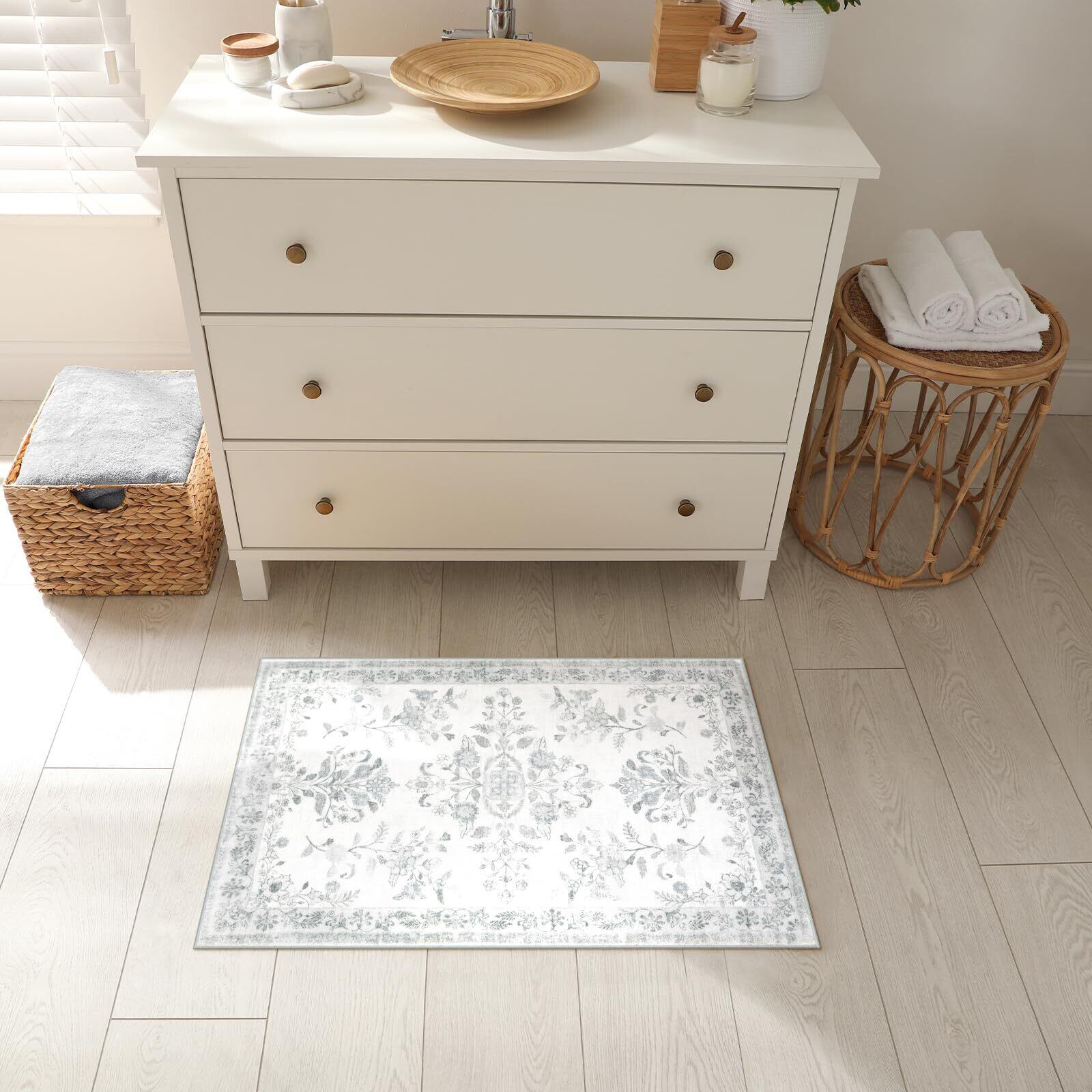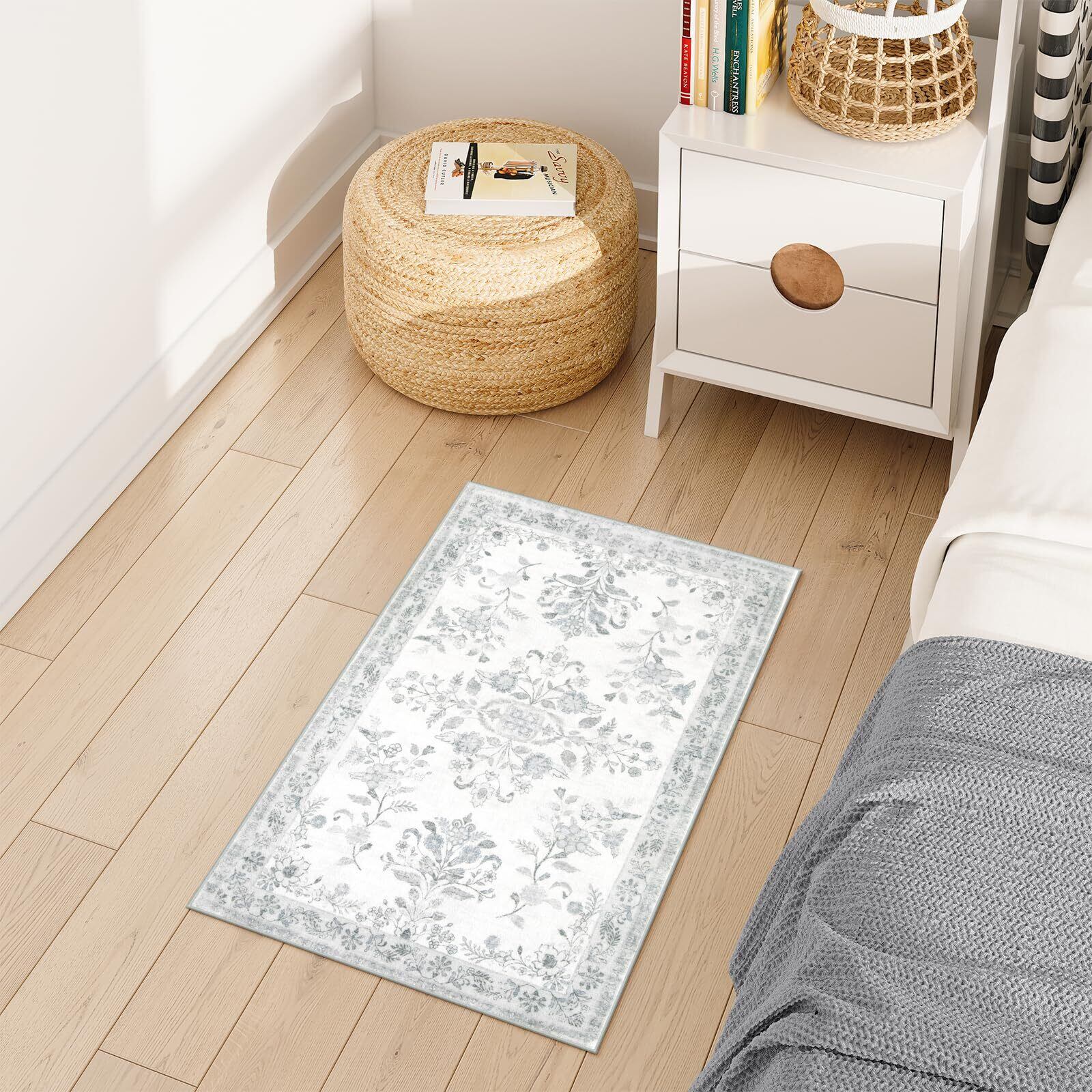 HAOCOO 玄関マット 室内 ペルシャ風 ラグマット 洗える 50х80cm 小さい おしゃれ 長方形 滑り止め 低反発 防音 屋外 泥落とし オールシーズン適用 耐磨耗性 軽量 花柄 ライトグレー