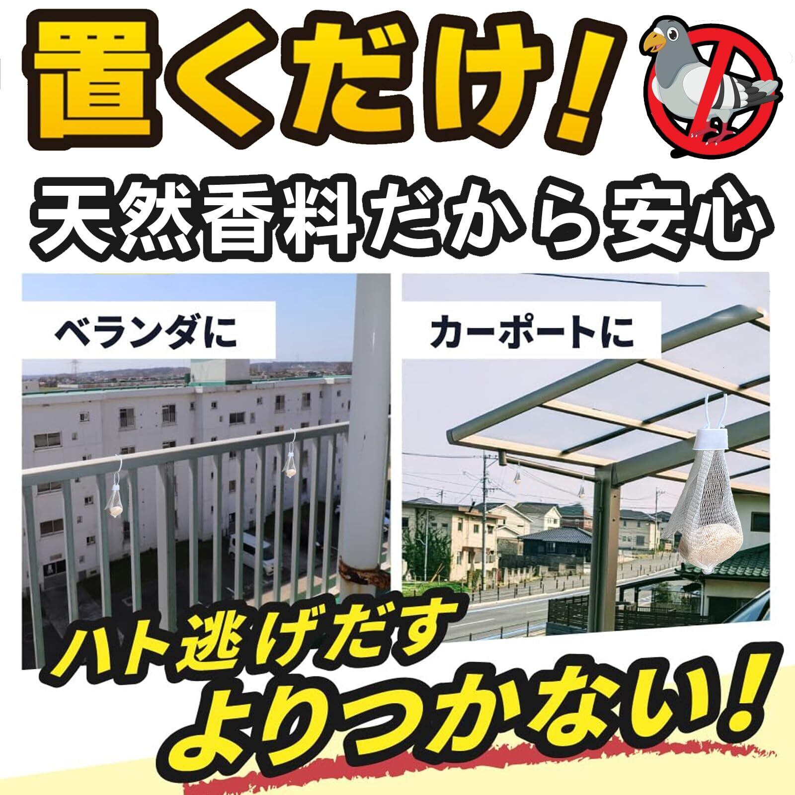 【天然香料で安全安心】子供やペットへの影響がない植物由来の安全成分。人には優しくハトを寄せ付けない環境を作る鳩よけ忌避剤です。