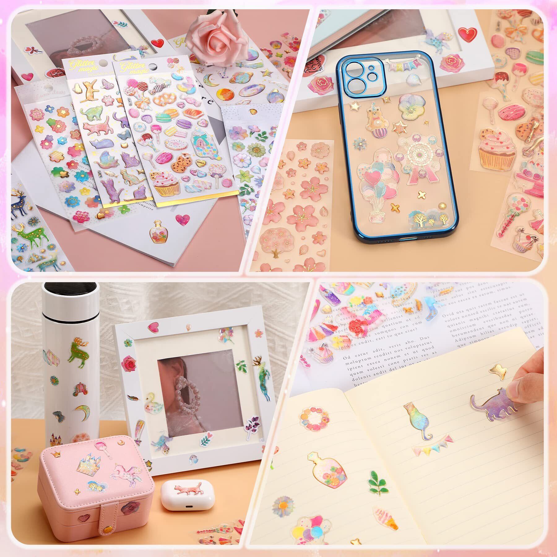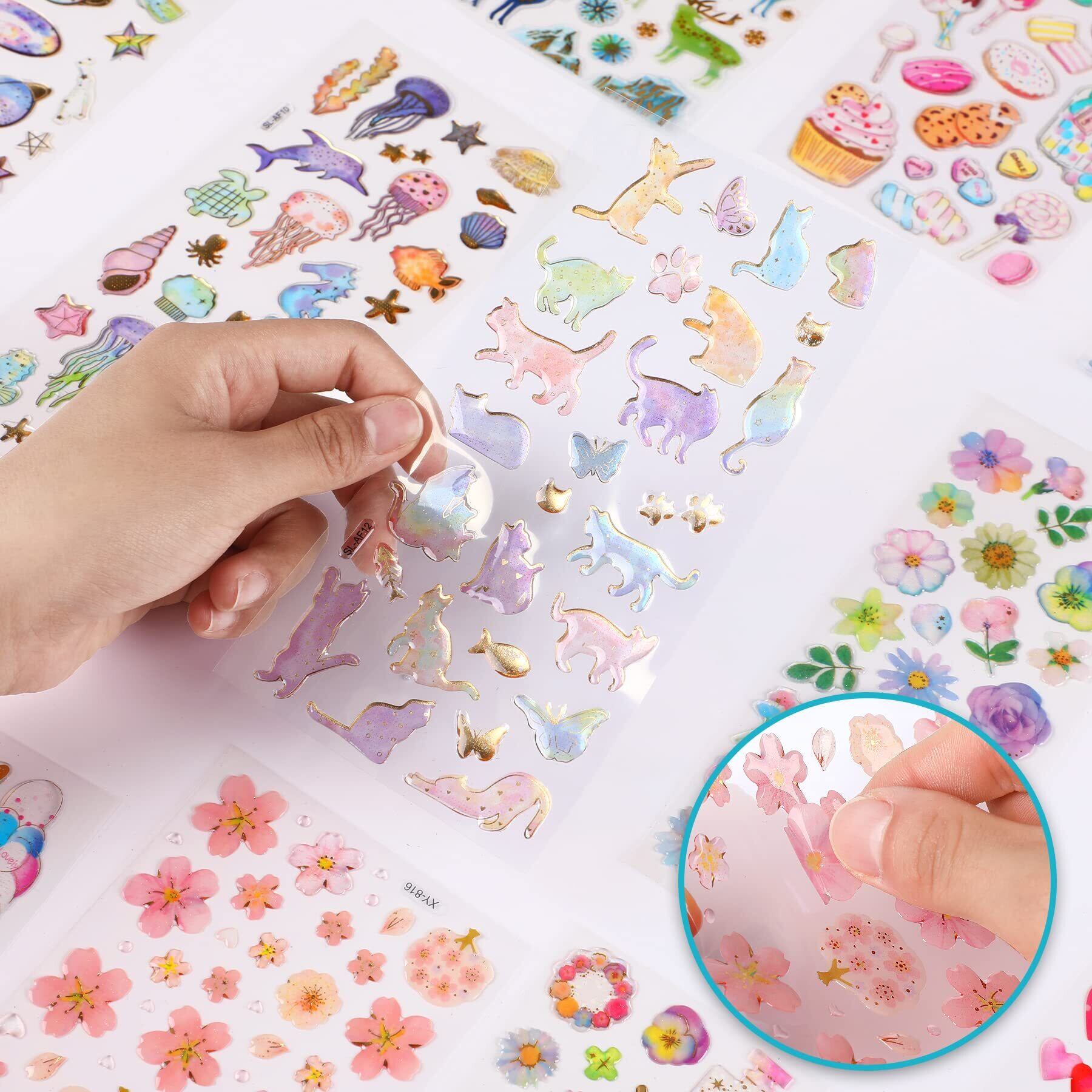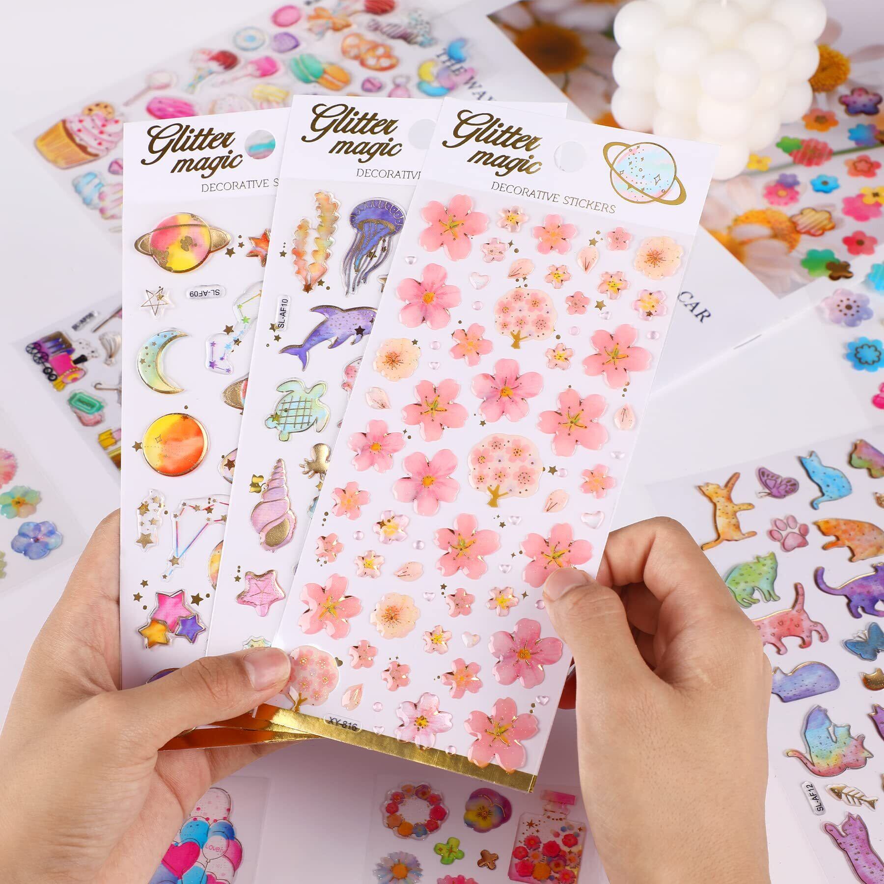 SANNIX キラキラシール 女の子 14シート ごほうびシール 手帳ステッカー ぷくぷく シール キラキラ ハート 立体 デコ ステッカー ごほうび スケジュール帳 星花と貝殻クラゲ