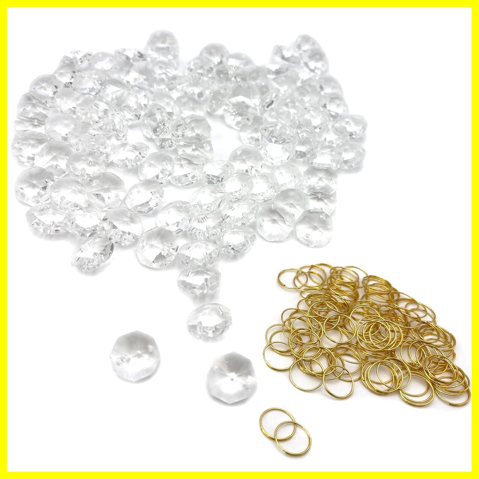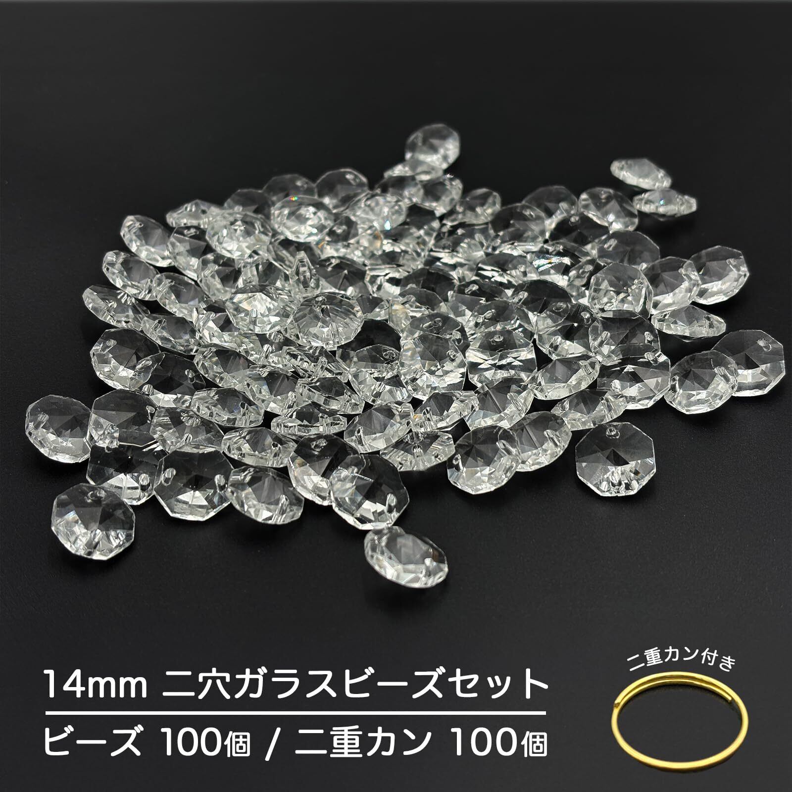 (エスネット) 二つ穴 クリスタル ビーズ シャンデリア 八角 14mm 手芸 ビジュー パーツ リング 付 のれん サンキャッチャー セット SN-256-CT カーテン テーブル(クリア 100個)