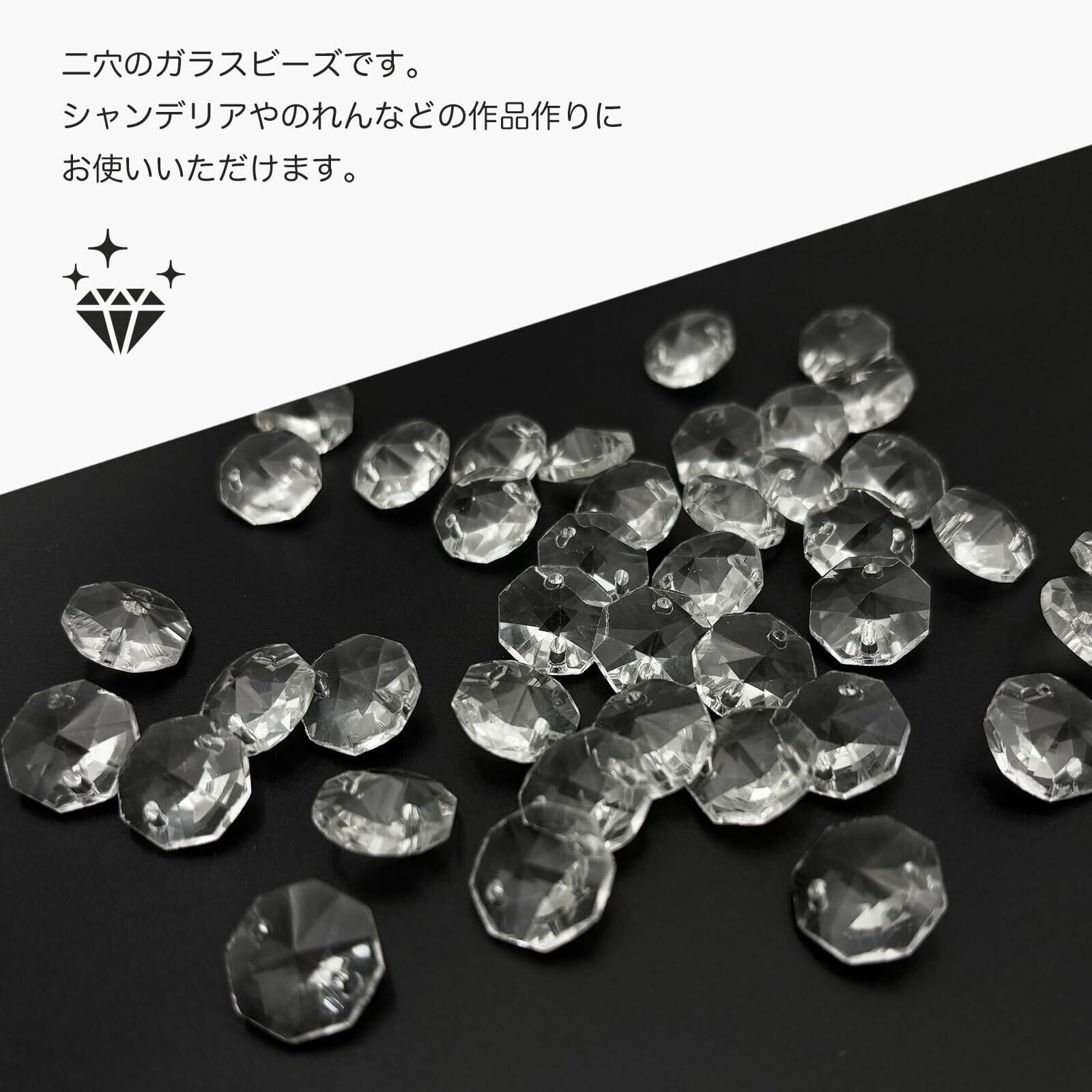 二つ穴構造により、レジン封入や鉢植えの装飾、小物アレンジにも活用可能。取り付けは簡単で、初心者でも扱いやすいのが魅力です。シャンデリアの補修やオリジナルの照明アートにもおすすめのシャンデリアビーズです。