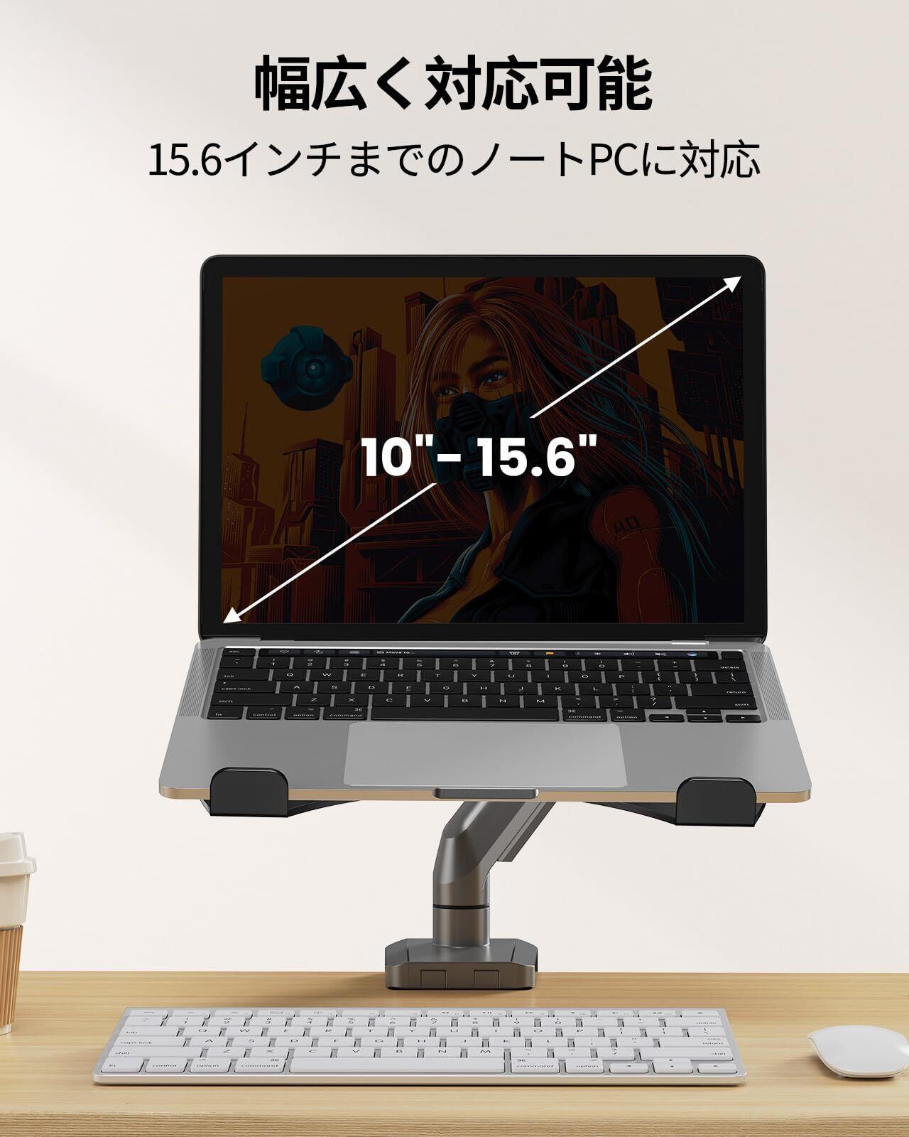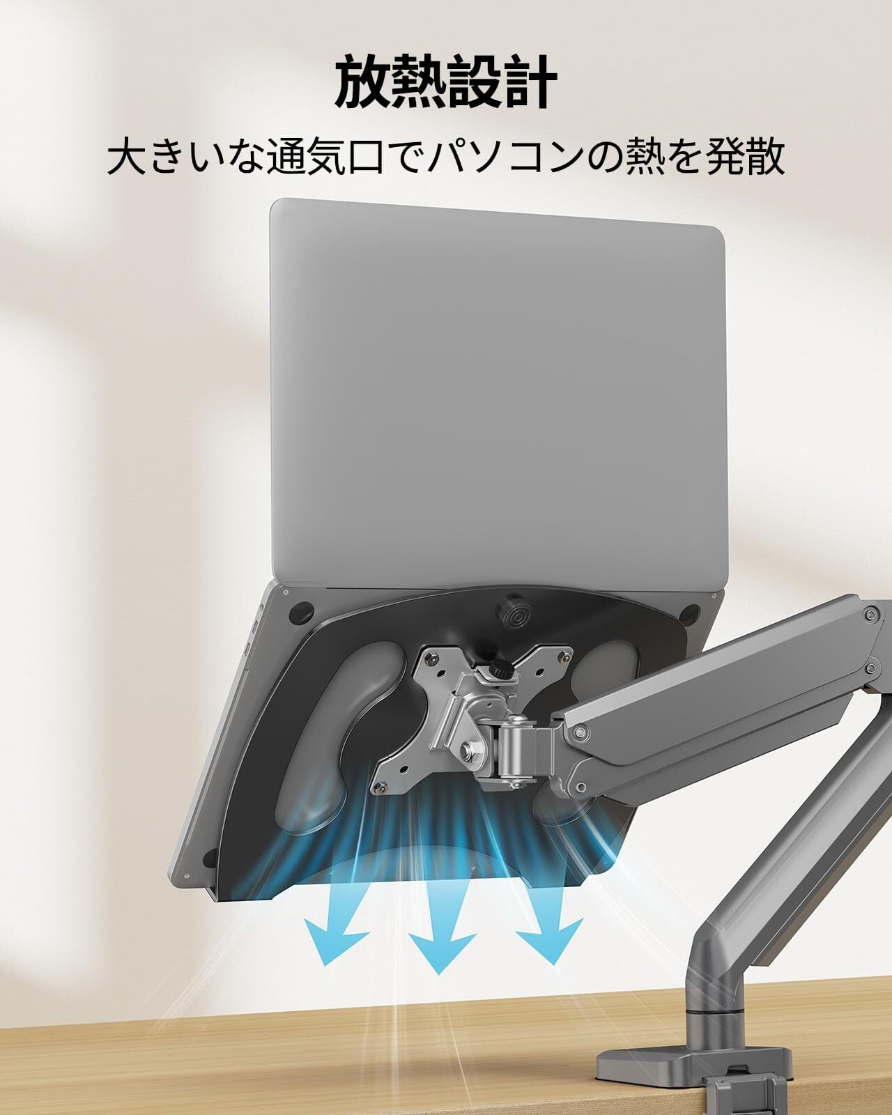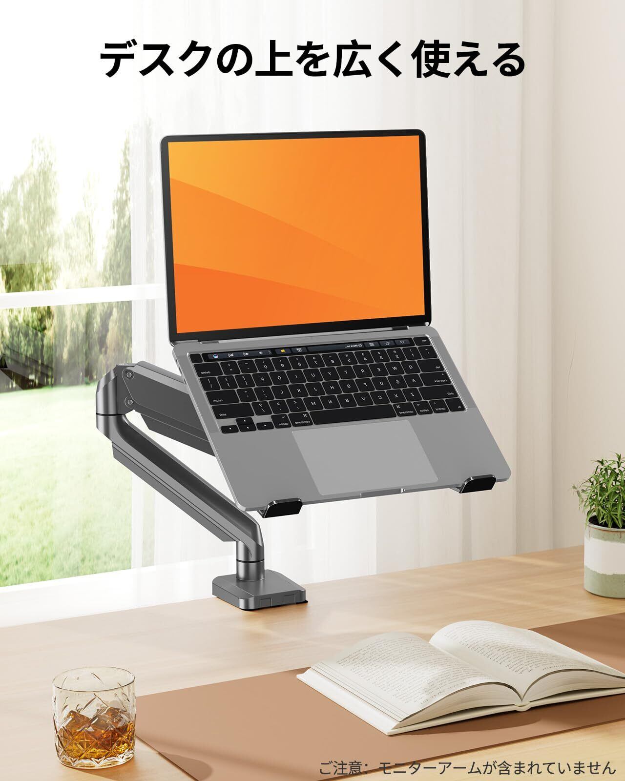 【デスクスペースを有効活用】モニターアームと組み合わせて、ノートパソコンやモバイルモニターなどを浮かせて使えるので、デスクスペースを広く有効活用できます。使いやすい高さ・位置に、機器を設置することも可能となります。
