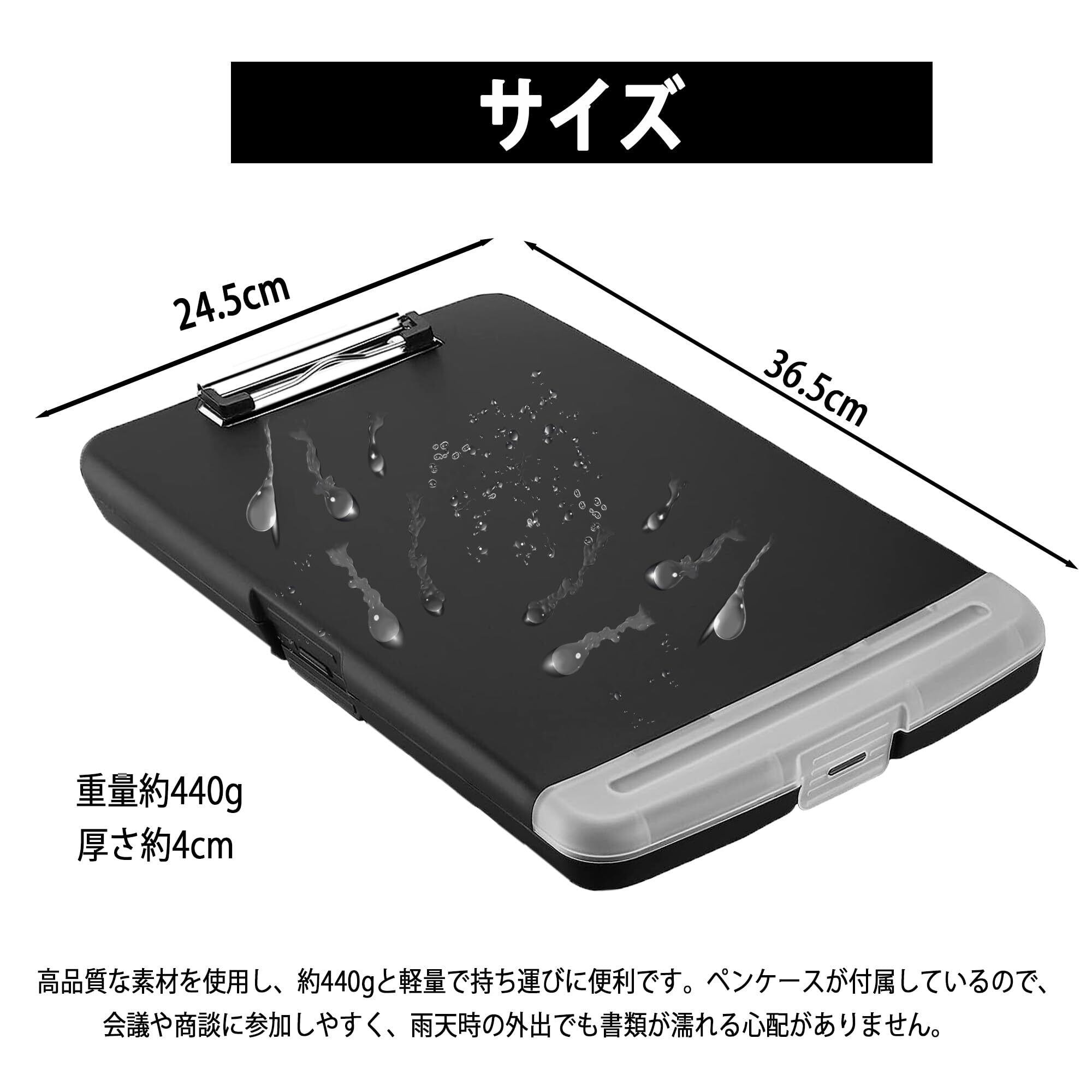 【多くの書類を管理するのに最適】A4サイズのクリップボードは、書類や手紙を保持するのに最適であり、紙に損傷を与えません。下部のペンケースは、2〜3本のペンの収納に適したサイズです。収納部分の高さは28mmあり、最大200枚のA4サイズのプリンタ用紙を収納できます。