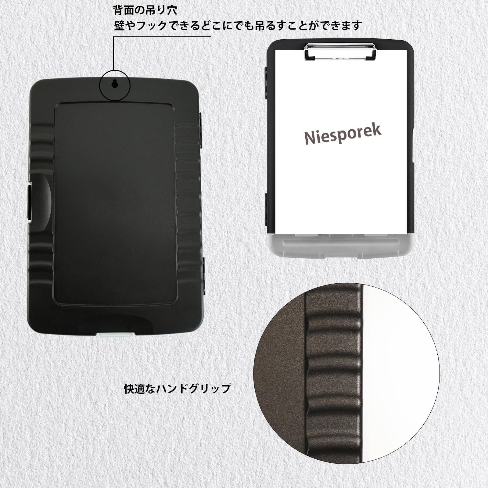 Niesporek クリップボードフォルダ A4 ファイルボード ルーズリーフ バインダーA4 2つ折り クリップボード 会議パッド クリップファイル 画板 メモパッド 書類ケース 収納仕切り 二つ折り 携帯便利 折り畳み式 多機能 事務用品 ペンホルダー ビジネス オフィス用品 防水ファイル保護(黒)