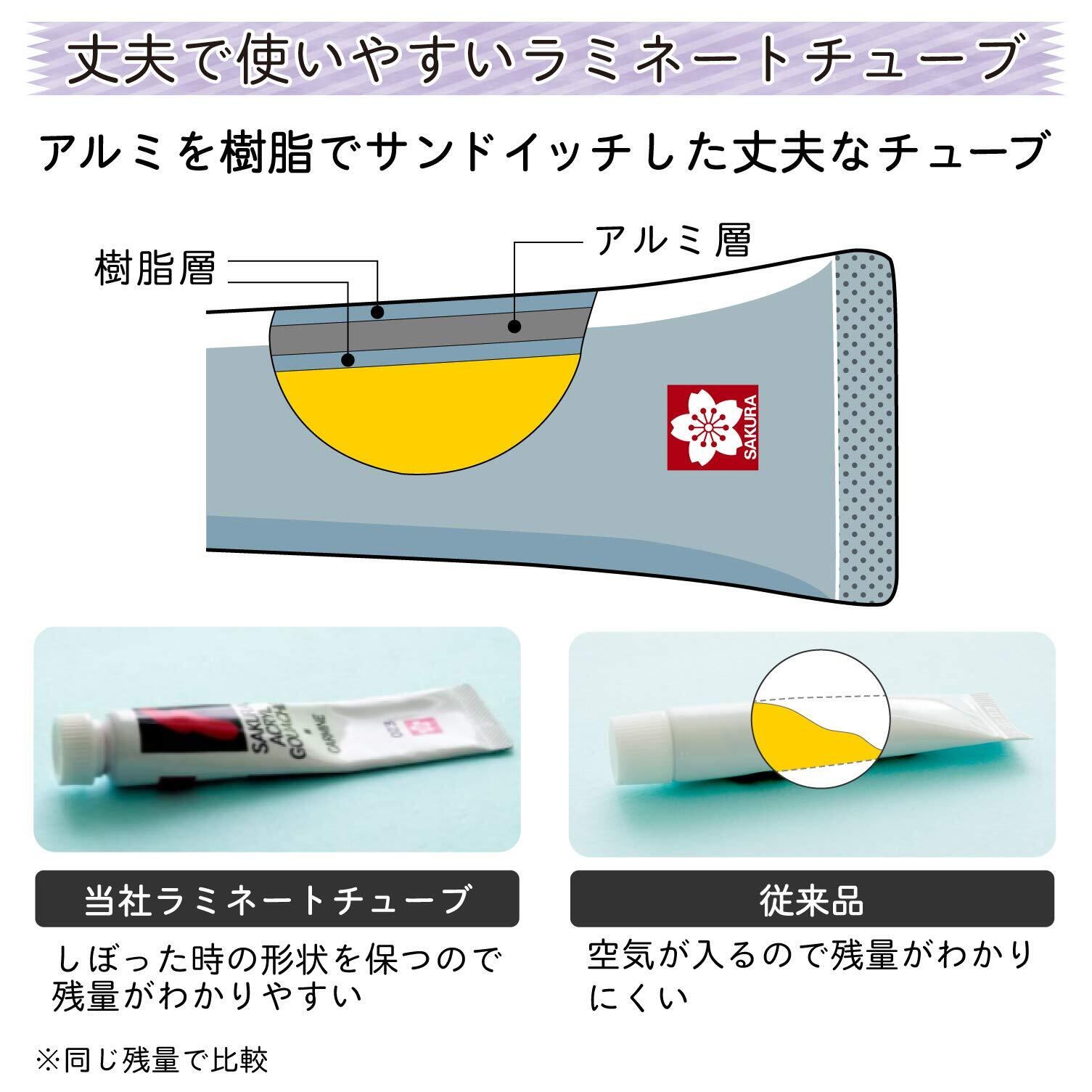【特長4】丈夫で使いやすいラミネートチューブ。アルミ層が入っているので、しぼった時の形状を保ち、残量が分かりやすい。