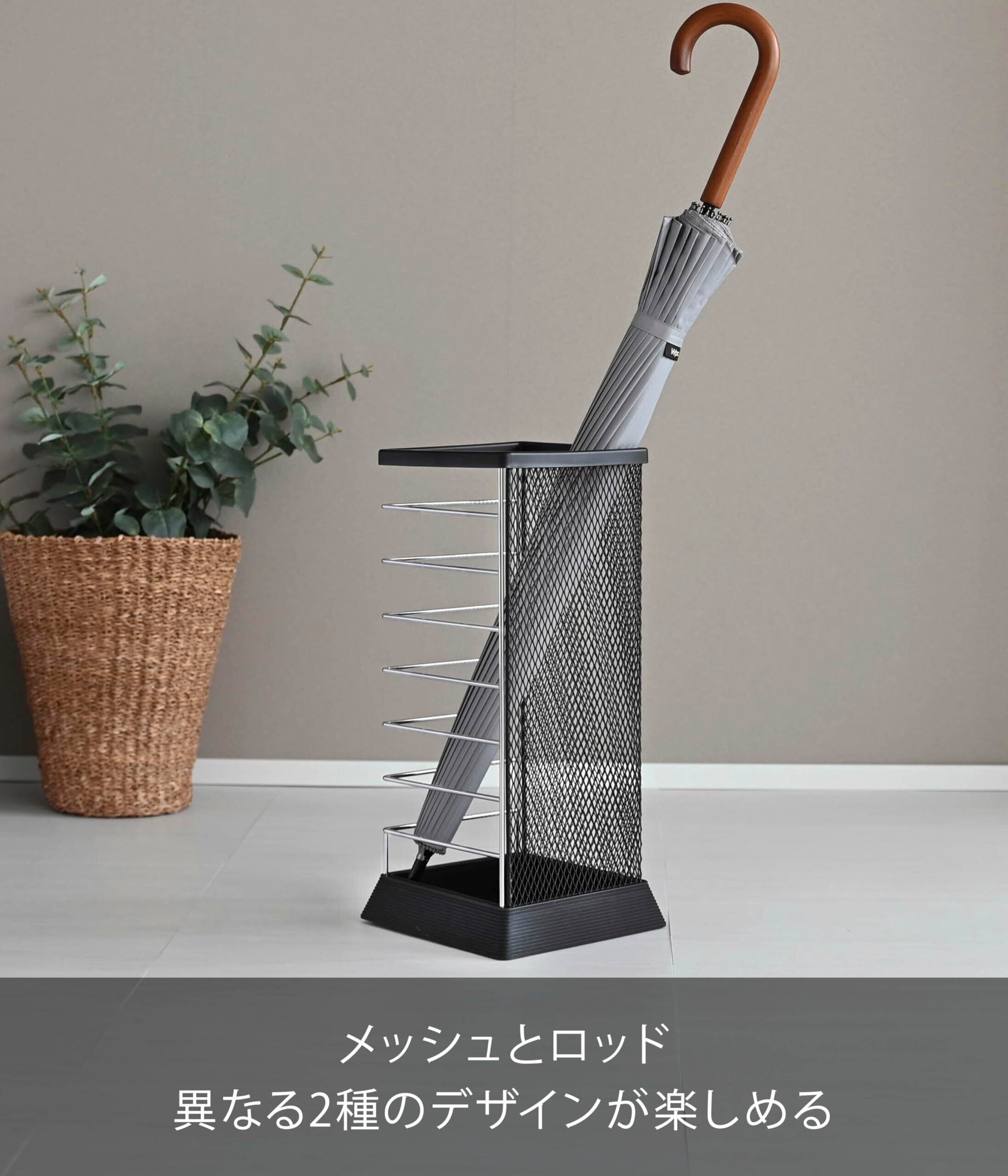 エッジの効いたフォルムがスタイリッシュな角型のアンブレラスタンド。