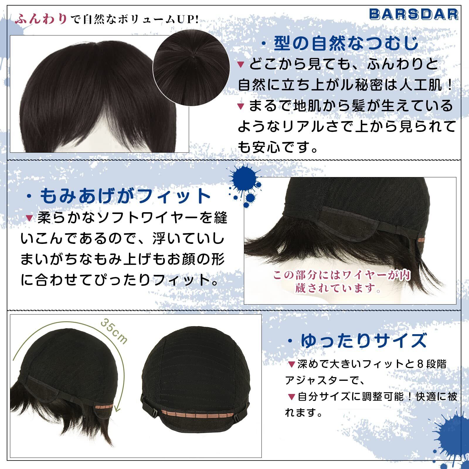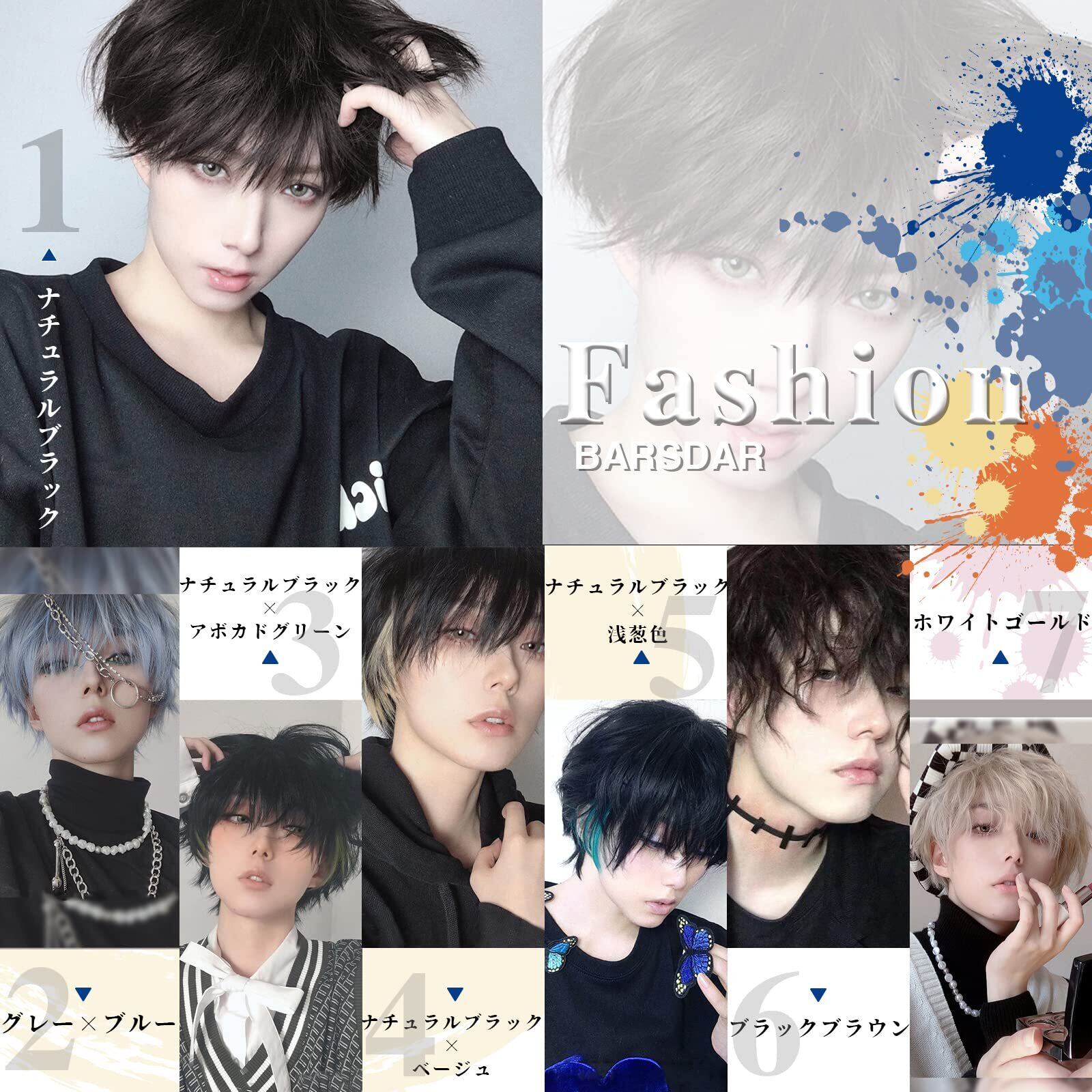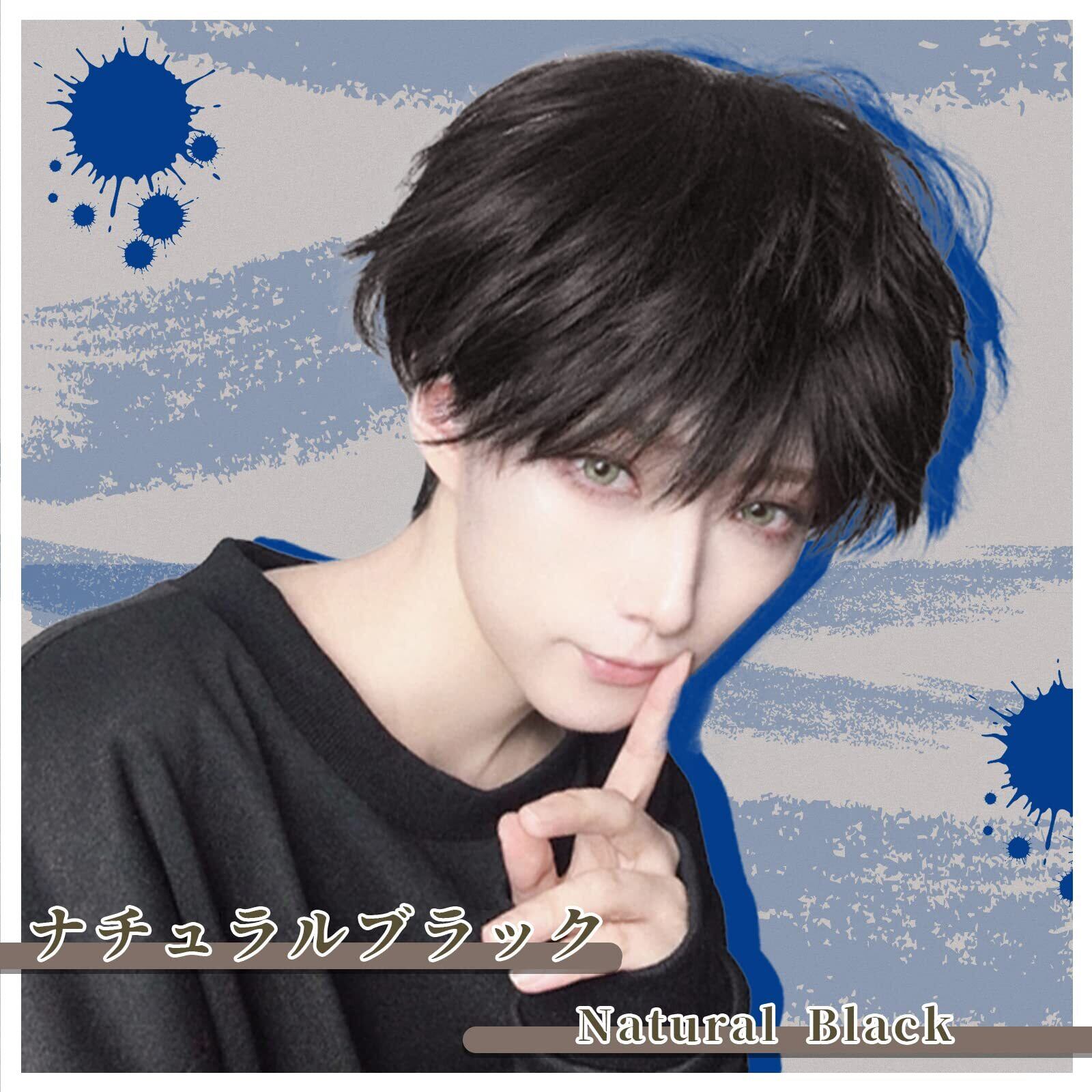 BARSDAR ウィッグ メンズ 男装 かつら ショート インナーカラー フルウィッグ 黒 男性 原宿 イケメン ハンサム 自然 小顔 耐熱 人気 ファッション イメチェン 男女兼用 グラデーション 短髪 ネット/櫛付き ナチュラルブラック