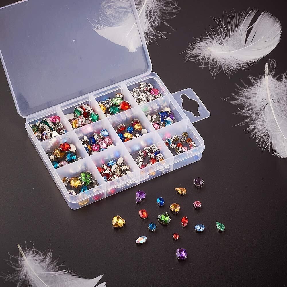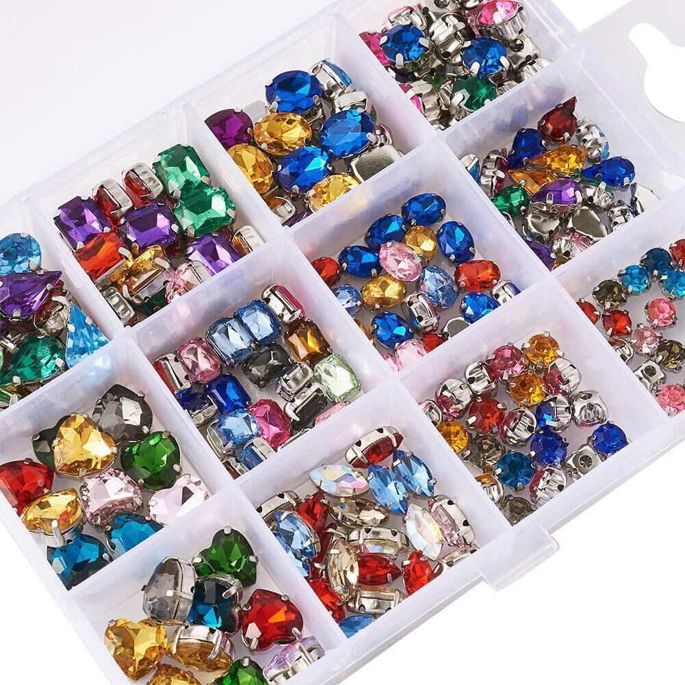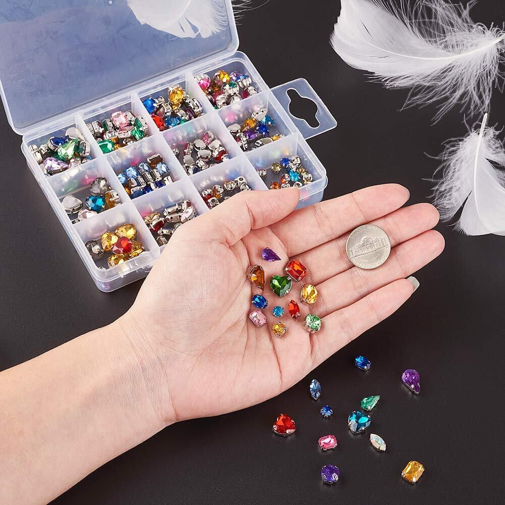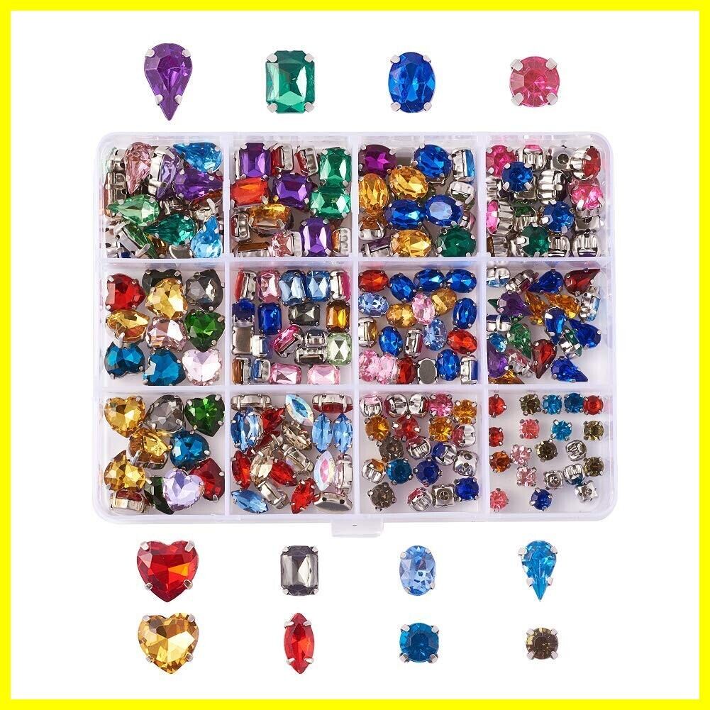 Beadthoven 11種 約190~240個入り A級ラインストーン 台座付き ストーン ガラスストーン&アクリルラインストーン アソートセット 銀メッキ 4爪 ビーズ ビジューパーツ アクセサリーパーツ ジュエリー DIY用品 手作り素材 材料 ビジュー レジン チャーム パーツ デコレーション パーツ クラフト用 飾り物