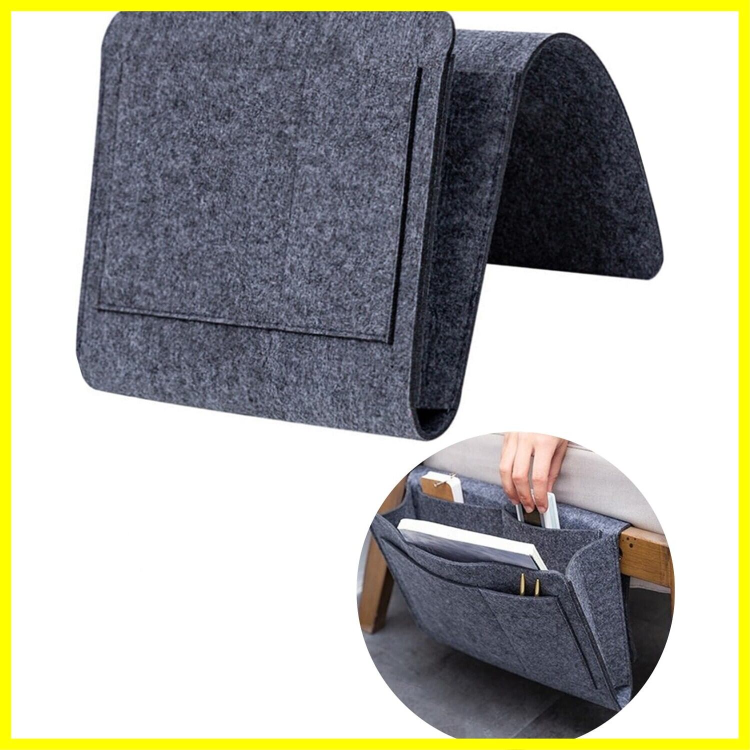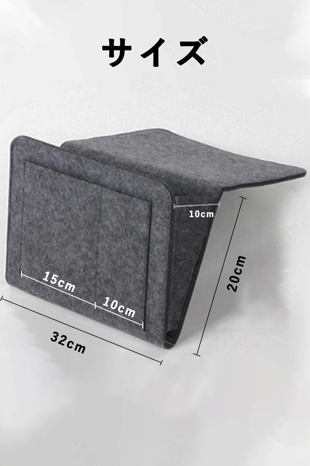 ベッドサイドのフェルト収納バッグは、サイズ:32×20cm(差し込み部を含みません)、カラー:グレー。
