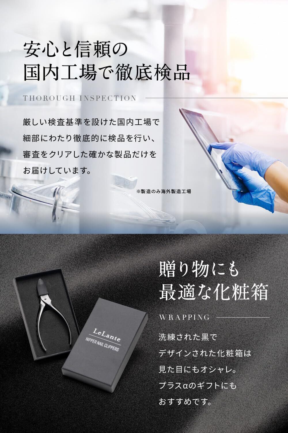 【お客様のお声】LeLante(レランテ)のニッパー爪切りをご使用いただいたお客様から喜びの声が届いております!「スパッと切れて感動した!」「悩みだった巻き爪のお手入れが楽になった!」」「やっと切りやすい爪切りに出会えた!」一般的な爪切りとは全く違う使い心地のニッパー爪切りです!是非一度この使い心地をご体験ください※こちらの商品は足の爪用です。手の爪には「LeLante 爪切り(ガンメタプレミアムブラック)」または「LeLante 電動爪切り」をおすすめしております。