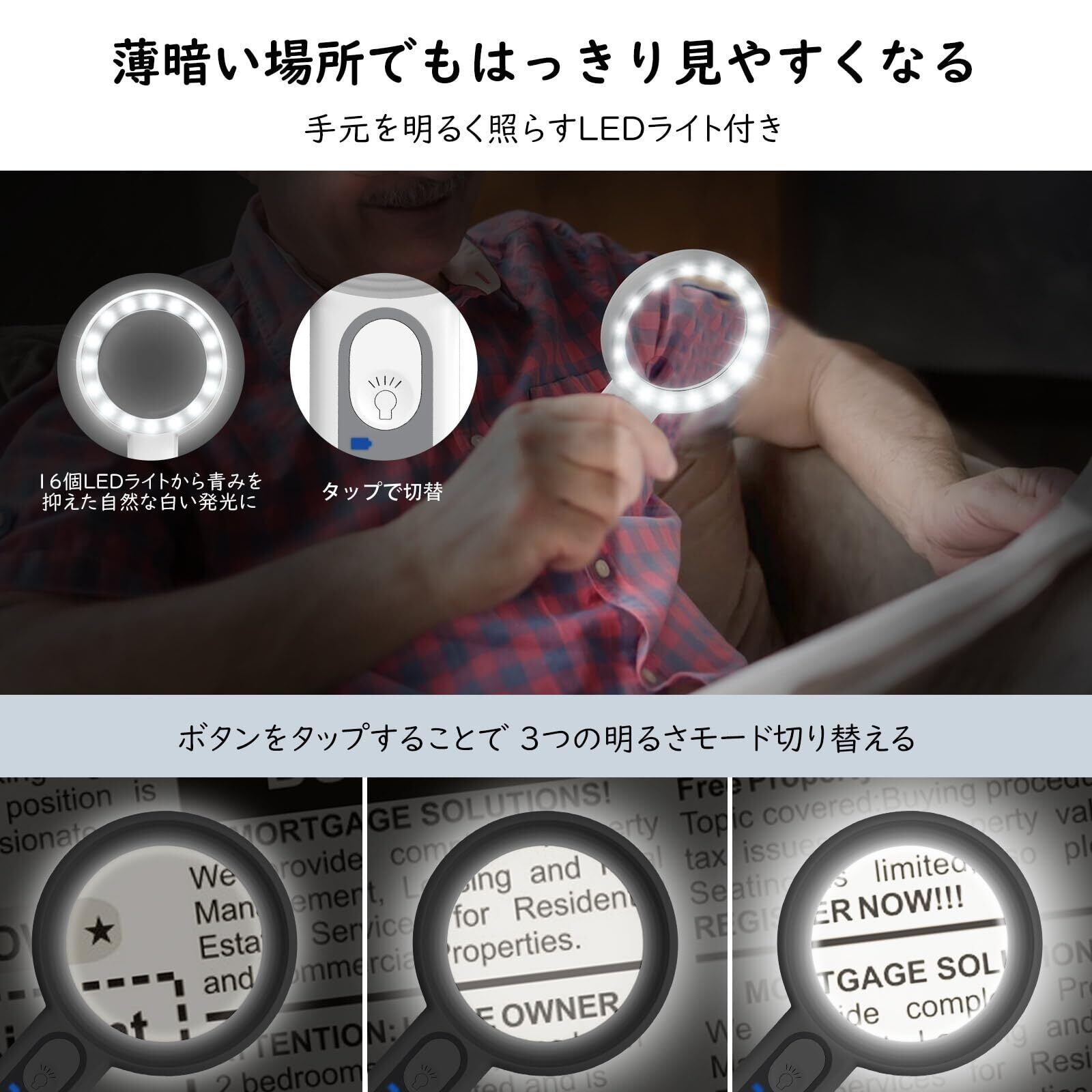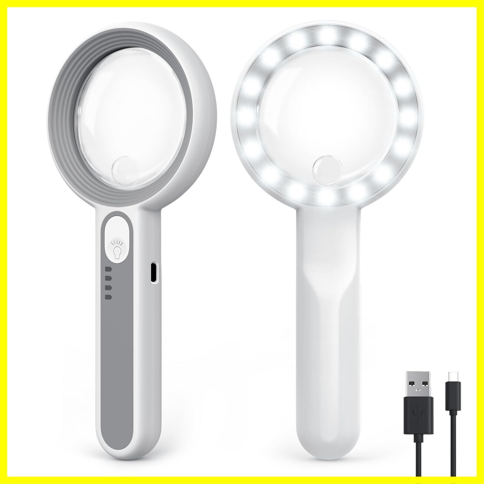 MoKo ルーペ 手持ちルーペ LED付き USB充電式 虫眼鏡 拡大鏡 6+12倍高倍率 2in1 デュアルレンズ 読書用拡大鏡 ハンドヘルド 60mm内径 光学ガラスレンズ 耐衝撃 新聞 コンパクト 携帯便利 細かい作業 昆虫/植物観察