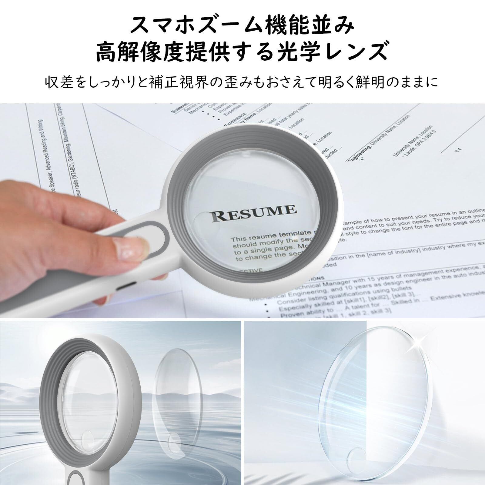 「細かい作業に活躍するルーペ」新聞の細かい文字を読みやすくしたり、パーツや図面などを拡大したいなど細かな作業や、高精度を必要とする観察や検品をスムーズに行えるのに役立つ拡大鏡となります。凸レンズを通して文字など様々なモノを拡大して見られるので、年配の方だけでなく、細かい検品作業を行う若い方まで、幅広い世代でご使用いただけます。