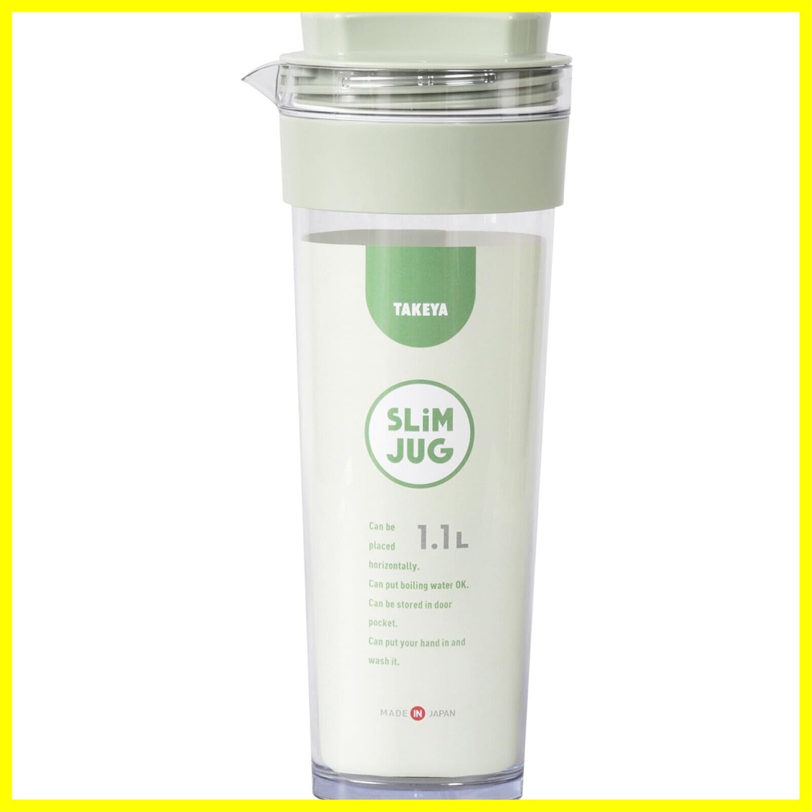 タケヤ化学工業 TAKEYA スリムジャグII 1.1L グリーン 耐熱100度 横置きOK 広口でお手入れ簡単 ドアポケットの前列に