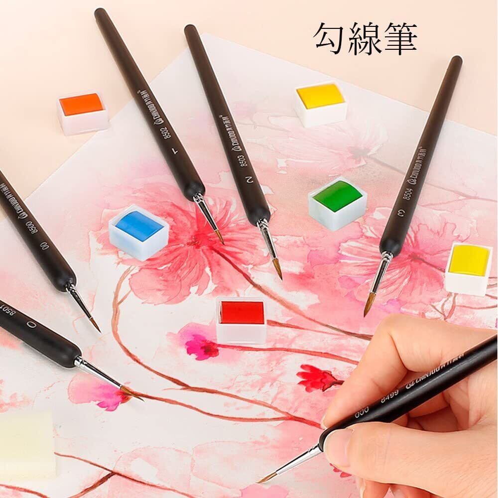 面相筆 勾線筆 6本セット 画筆 絵筆 極細 筆 水彩筆 水彩画 水墨画 アクリル筆 プラモデル塗装筆 (6本セット)