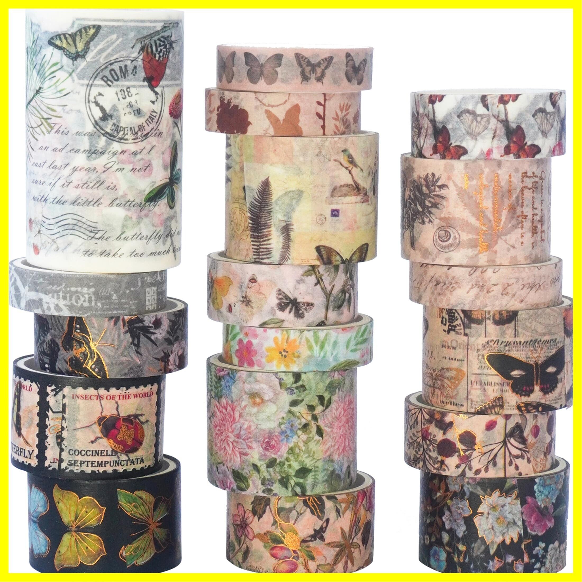 【美しいデザイン】この和紙テープセットは、ヴィンテージスタイルの蝶を主題とし、様々な花と蝶の模様が調和し合っています。金箔の蝶の羽と花の縁取りにより、これらのテープは華やかな魅力に満ちています
