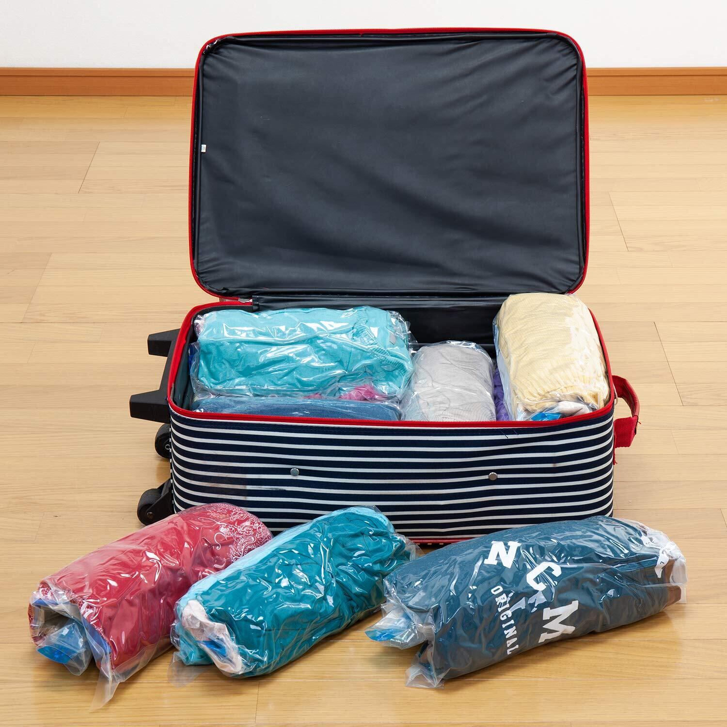 【掃除機不要】掃除機不要でどこでも衣類を圧縮。くるくる巻くだけで衣類を簡単に圧縮できる。