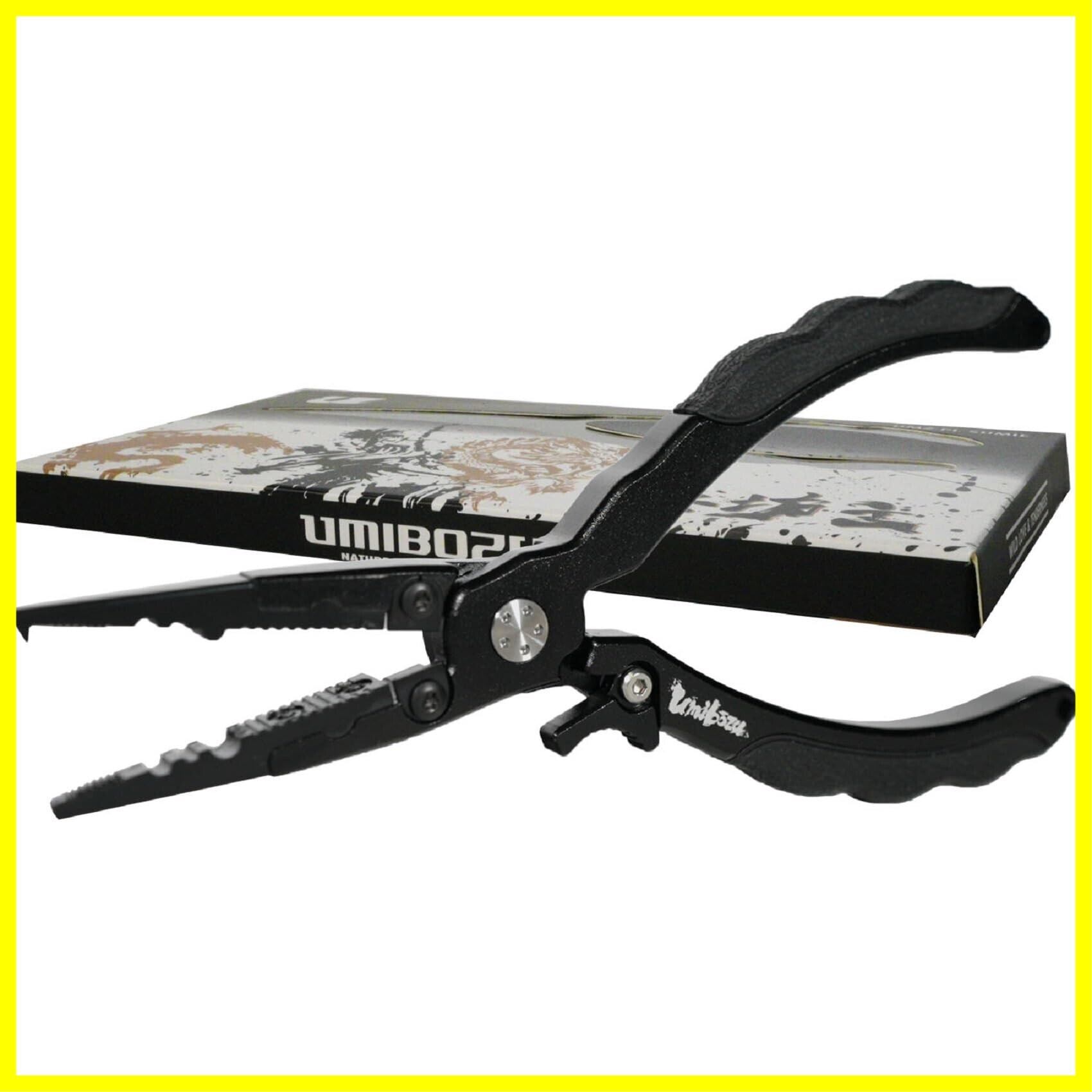 Umibozu(ウミボウズ) フィッシングプライヤー 日本墨絵モデル 国内 錆びない ロック機能付き 多機能 針はずし フックはずし ラインカッター 安全ロープ付き ステンレス 高性能 超軽量 【 黒龍 】