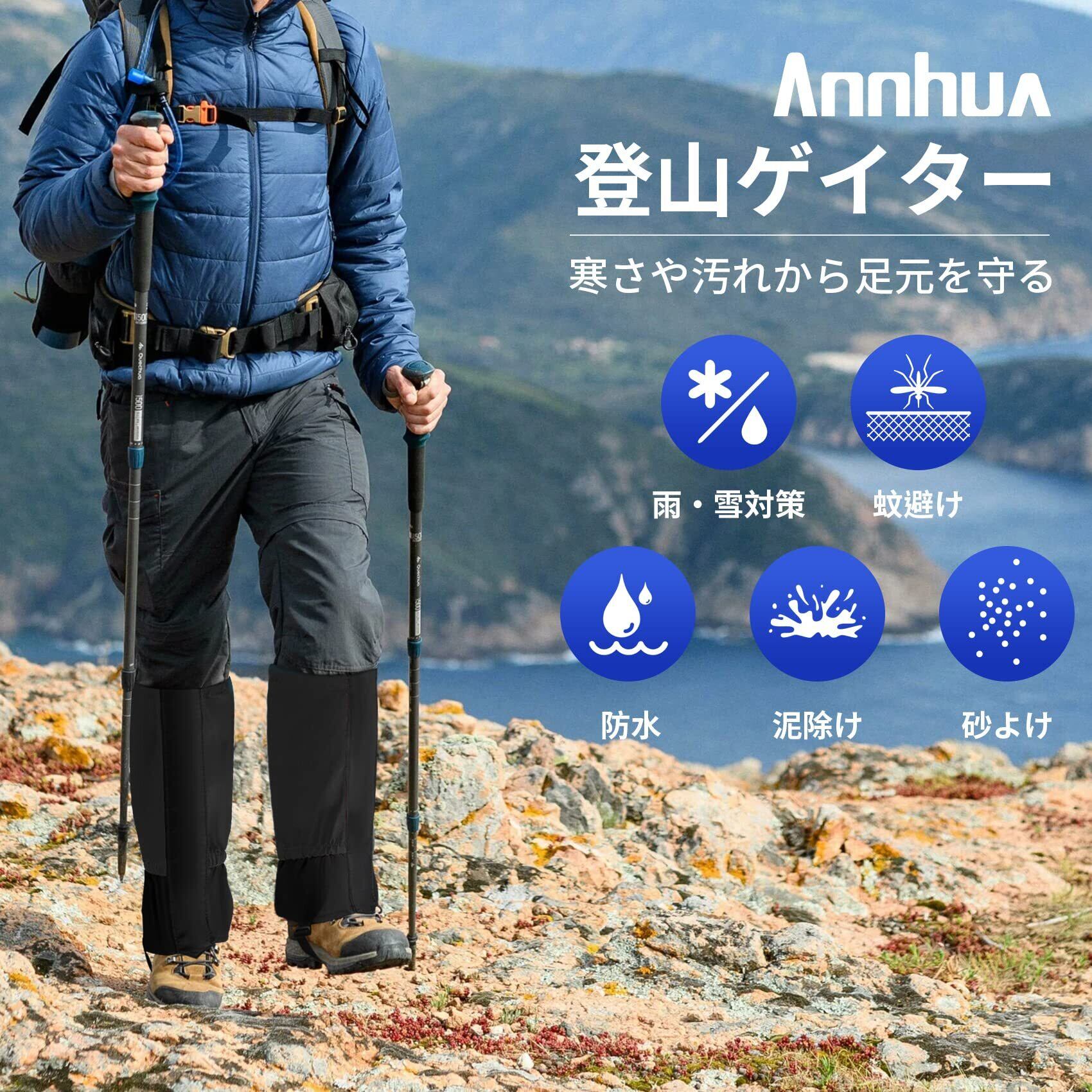Annhua 登山スパッツ ゲイター ロングスパッツ 登山 ロングゲイター 砂よけ 泥はね 防風 装着簡単 軽量 アウトドア 男女兼用