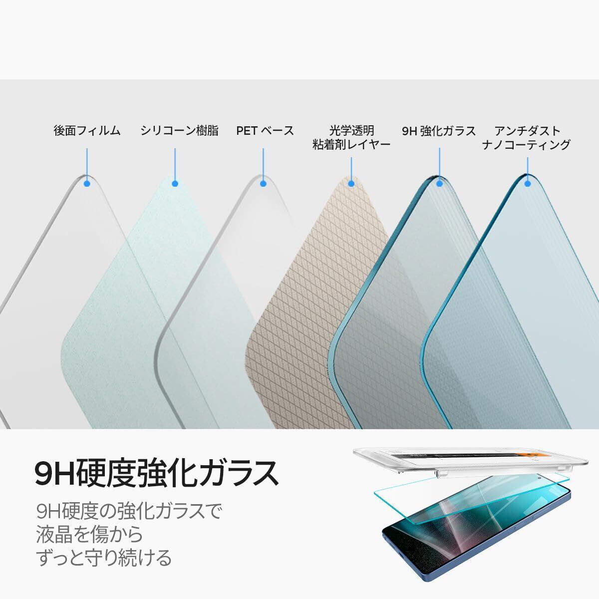[9H強化ガラス]加熱処理で、表面に圧縮応力を発生させ(Na+とK+イオン交換による科学強化)、万が一傷ができても追加的な破損を防ぎます。加えて、9H強化ガラスを採用し、一般ガラスより衝撃に5倍強いです。このような耐久性を認められ、52か国で選ばれつづけています。 *商品の欠陥による問題は対応しておりますので、問題が発生した場合ご連絡ください。