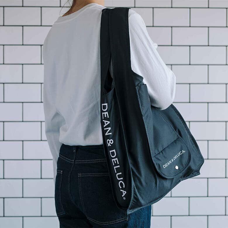 [ディーンアンドデルーカ] ショッピングバッグ ブラック エコバッグ 折りたたみ 軽量 コンパクト レジ袋 マイバッグ 43×37×14㎝