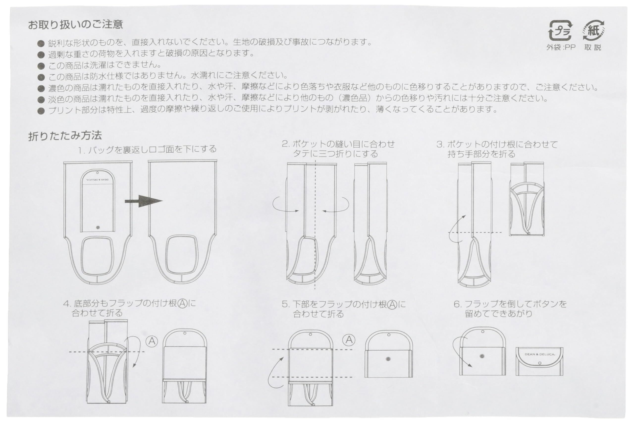 注意事項:過剰な重さの荷物をいれると破損の原因となります。洗濯はしないでください。防水仕様ではありません。濡れたものを直接入れたり、水や汗、摩擦などにより色落ちや衣服など他のものに色移りすることがありますので、ご注意ください。
