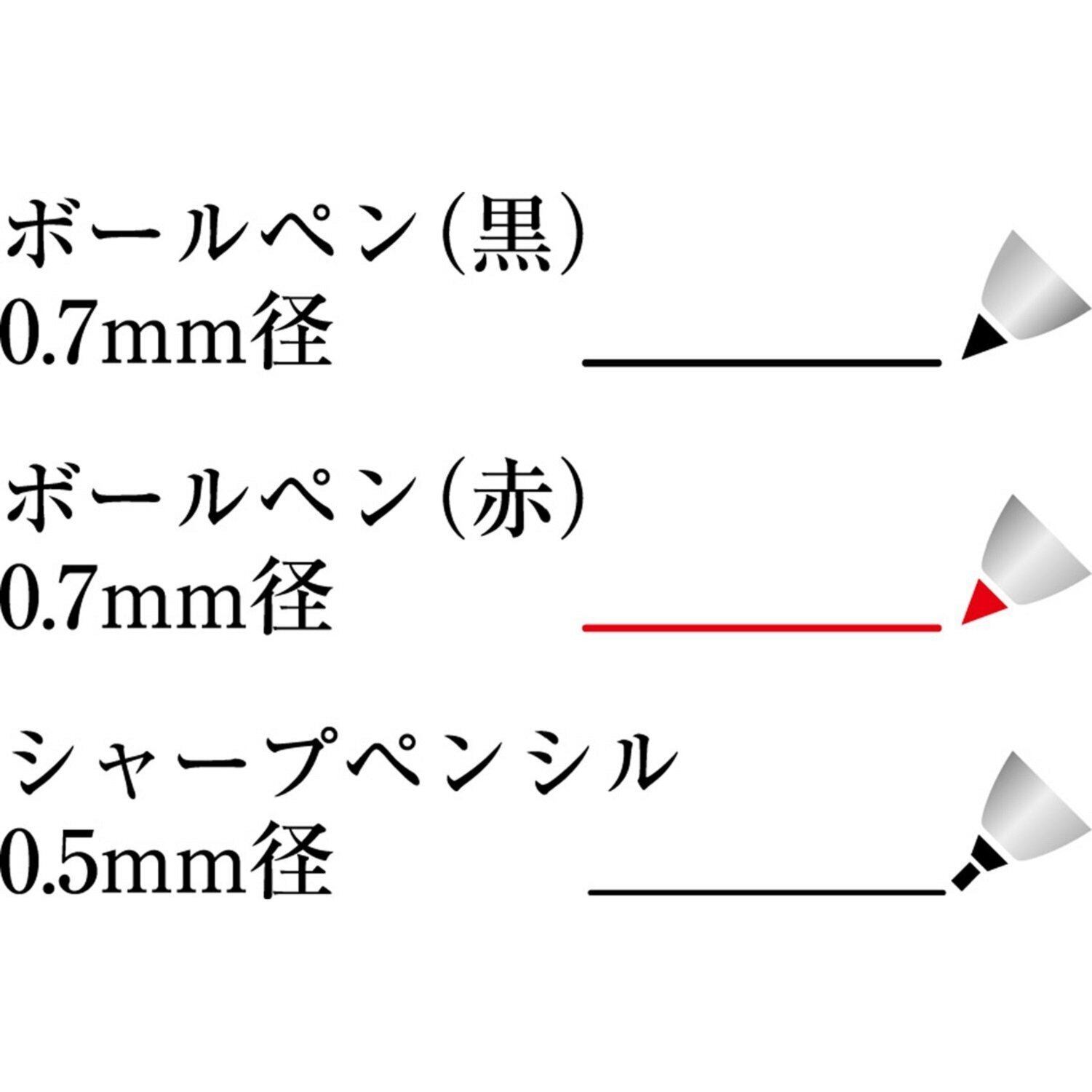 【ボール径】0.7mm(黒・赤) 【シャープ芯】0.5mm 【印面サイズ】直径:9.0mm