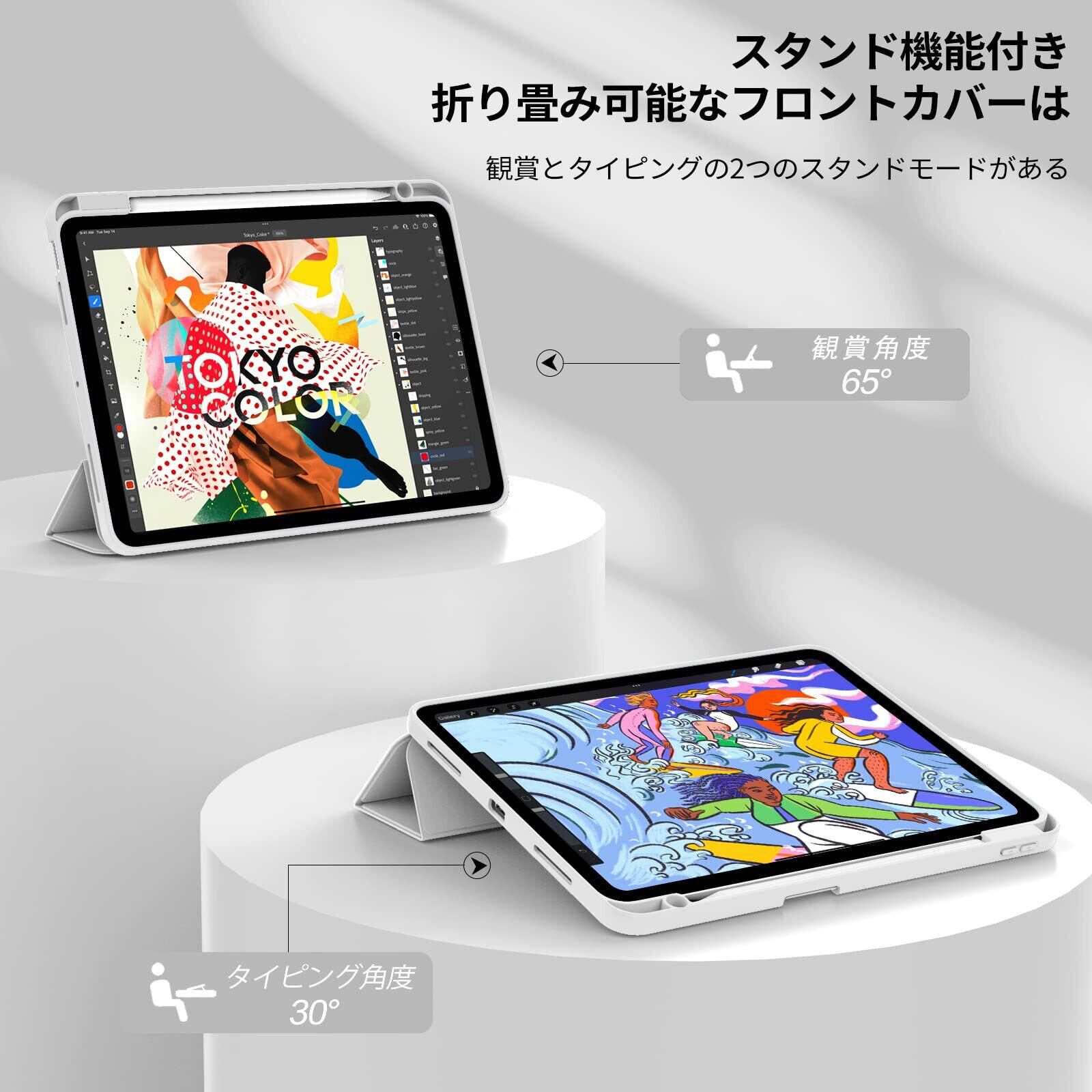 【ペンホルダー付き】内蔵のiPadペンシルホルダー、便利にあなたの鉛筆を配置し、取り外し、あなたが歩いているか、または屋外にいるときにあなたのApple Pencilを失うか、または壊すことを防ぎます。アップルぺんシルのペアリングとワイヤレス充電に対応できて。