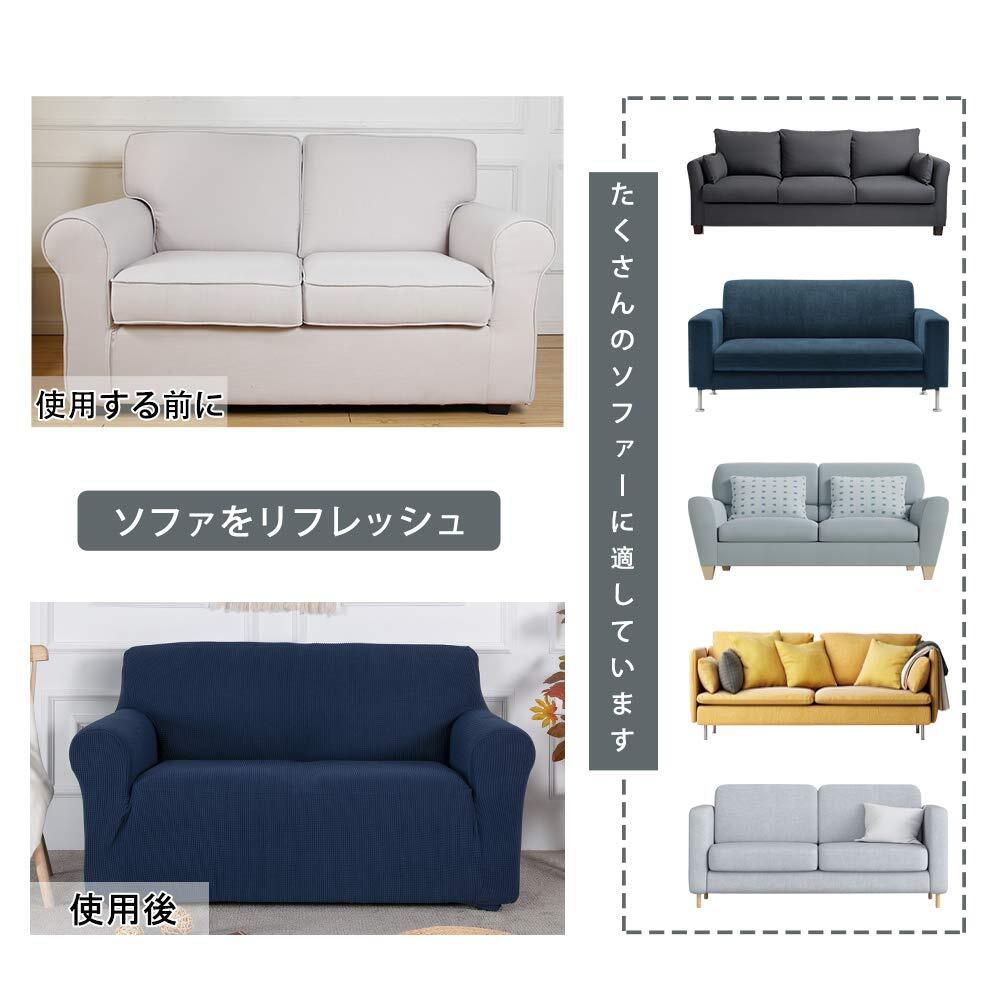 簡単着脱:ストレッチソファーカバーです。生地がグングン伸びて、簡単に着脱でき、肘付きソファーなど様々なソファーに適用です。滑り止め効果あります。女性一人でも簡単に取り付け可能です。
