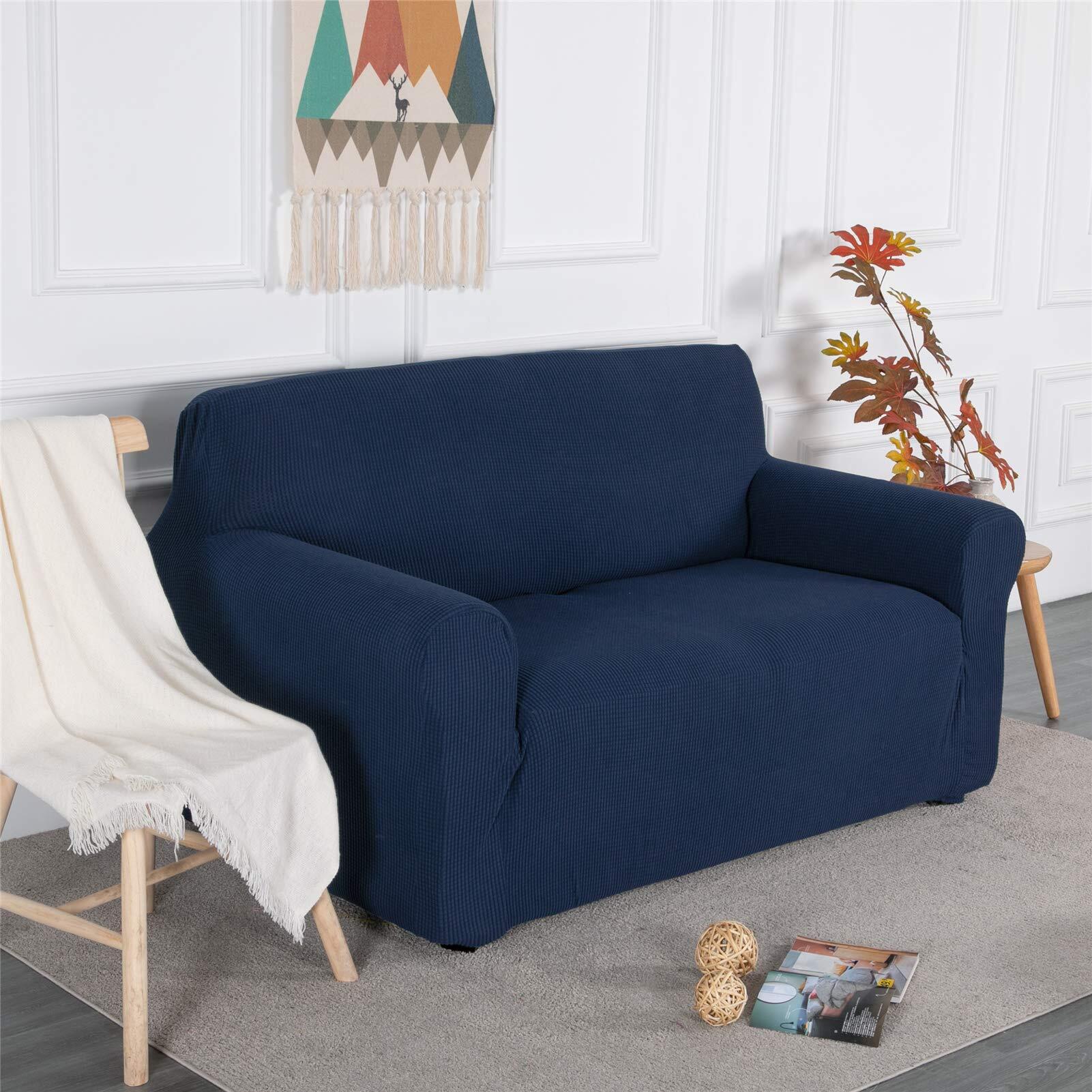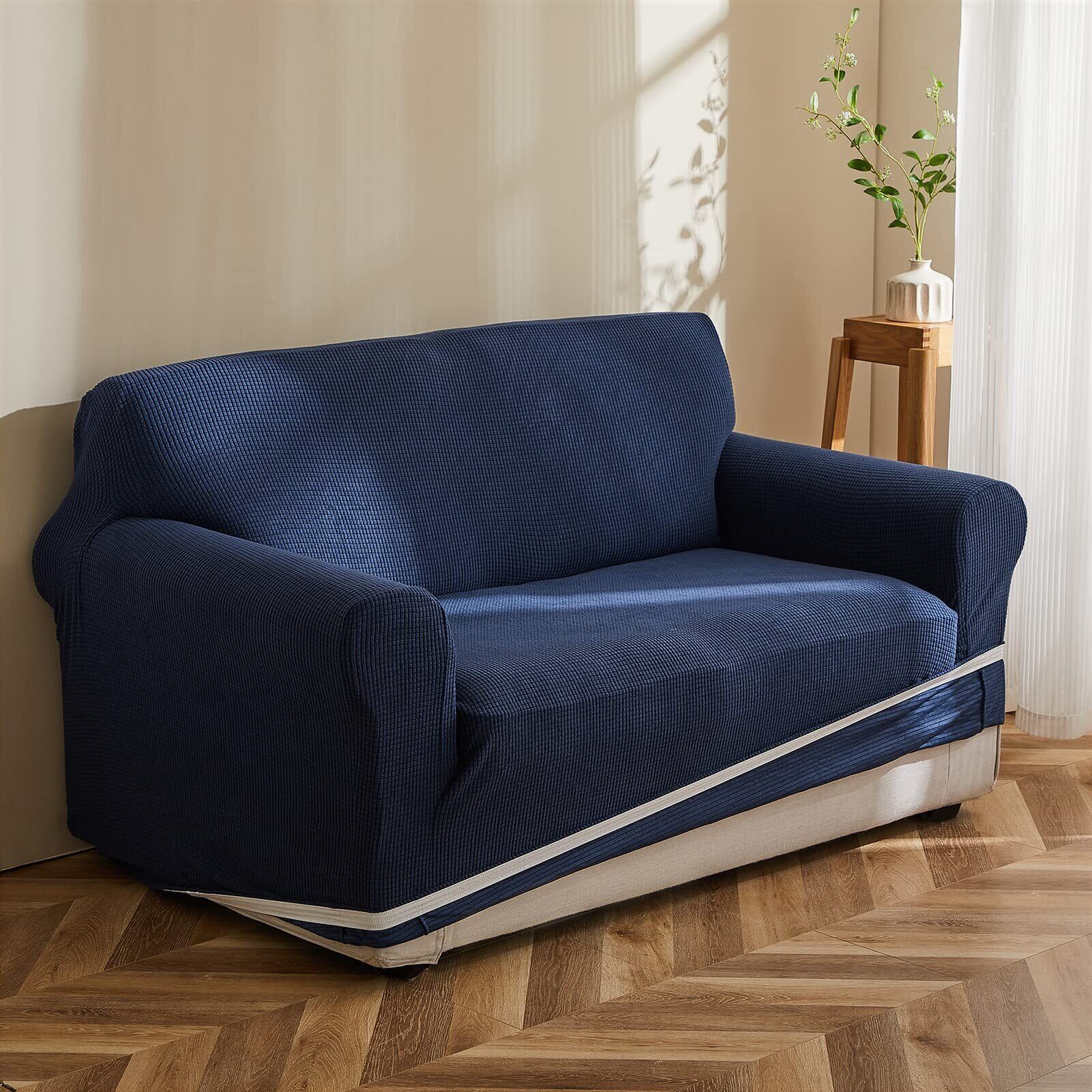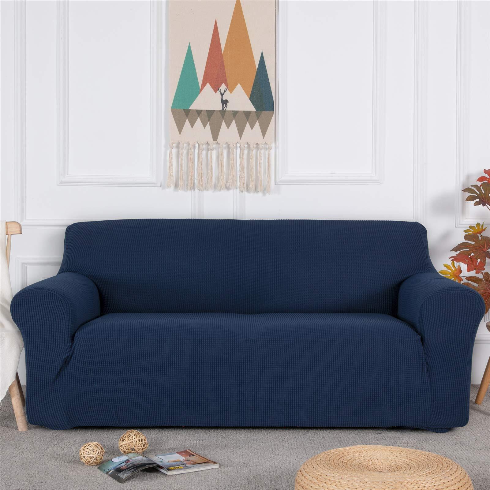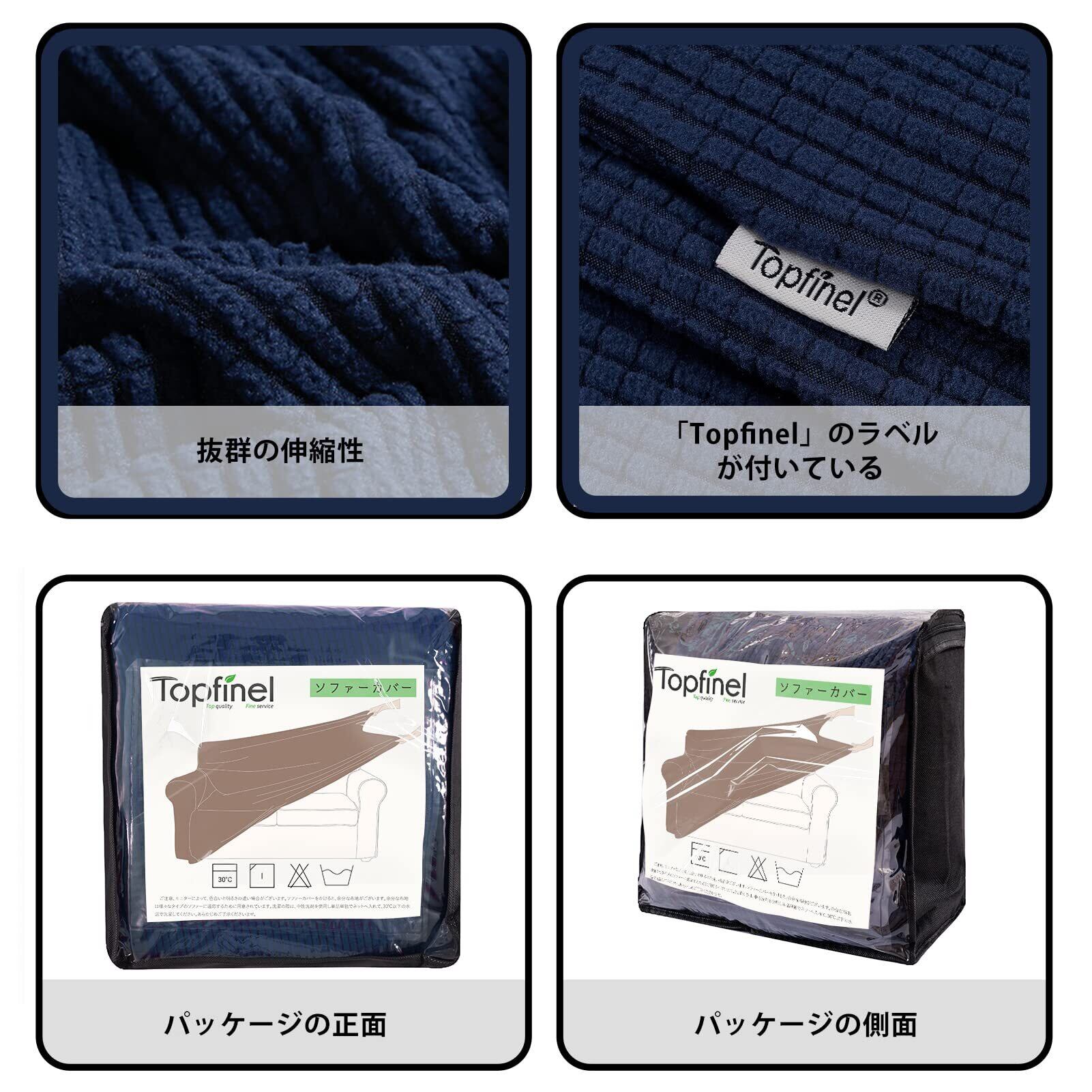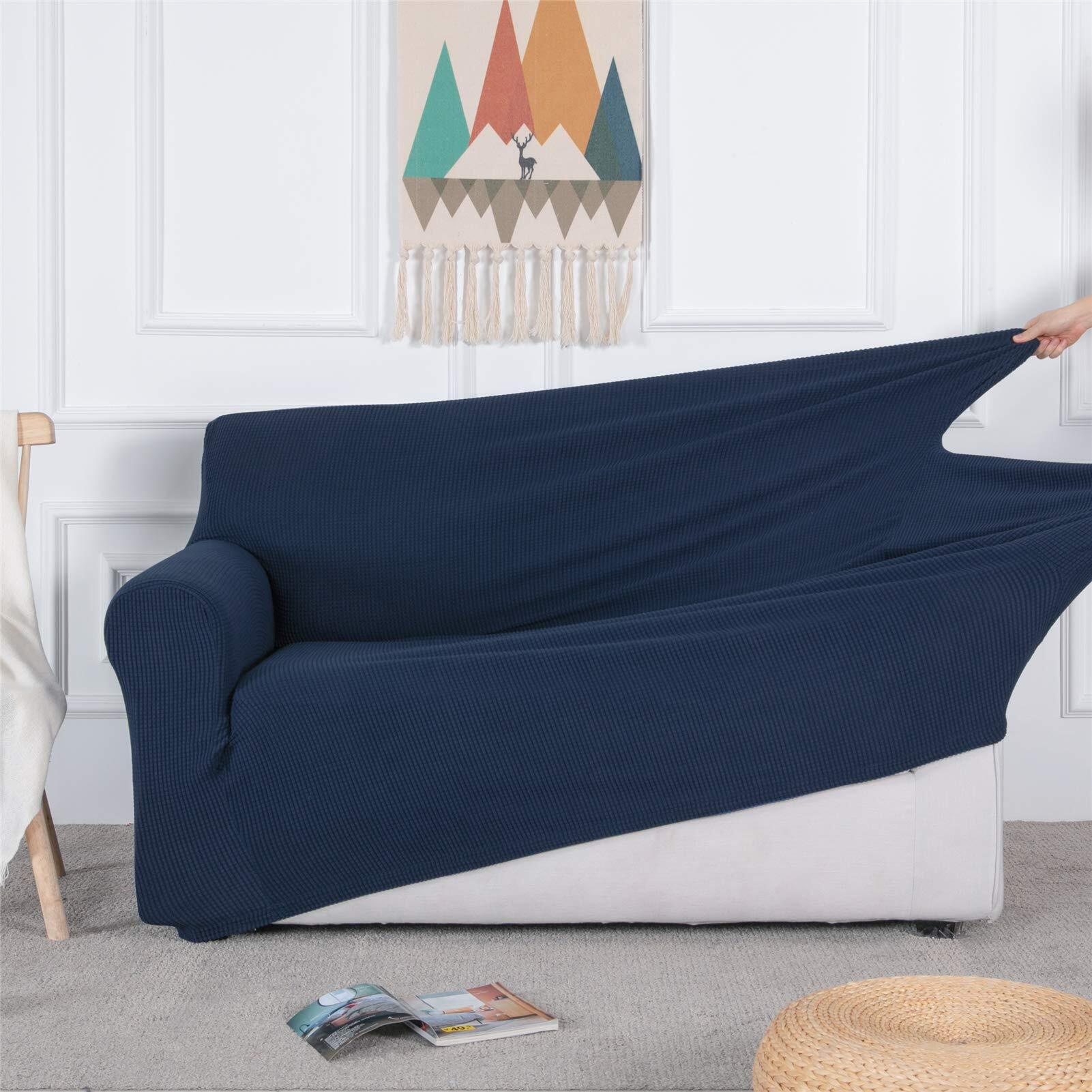 Topfinel ソファーカバー 3人掛け 肘付き 無地 北欧風 ストレッチ フィットタイプ 伸縮素材伸び良く 滑り止め 柔らかい 犬 猫 傷 防止 超便利 四季適用(ダークブルー)
