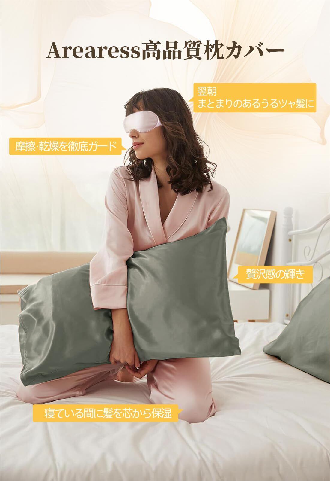 まくらカバー・美容&美髪:Arearessの枕カバーは髪に天然のうるおいを与えます。乾燥や刺激から髪をやさしく守れます!そして、優れたの生地は皮膚に最も近い成分で、肌に刺激を与えることがほとんどなく、敏感肌の方にもご安心に利用できる高品質カバーでございます。
