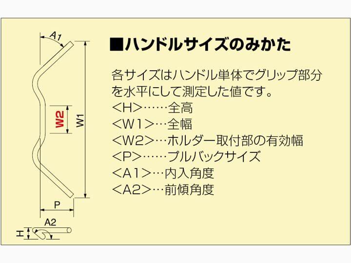 ●ハンドルサイズ:全高 80mm、全幅 680mm、ホルダー取り付け部有効幅 115mm