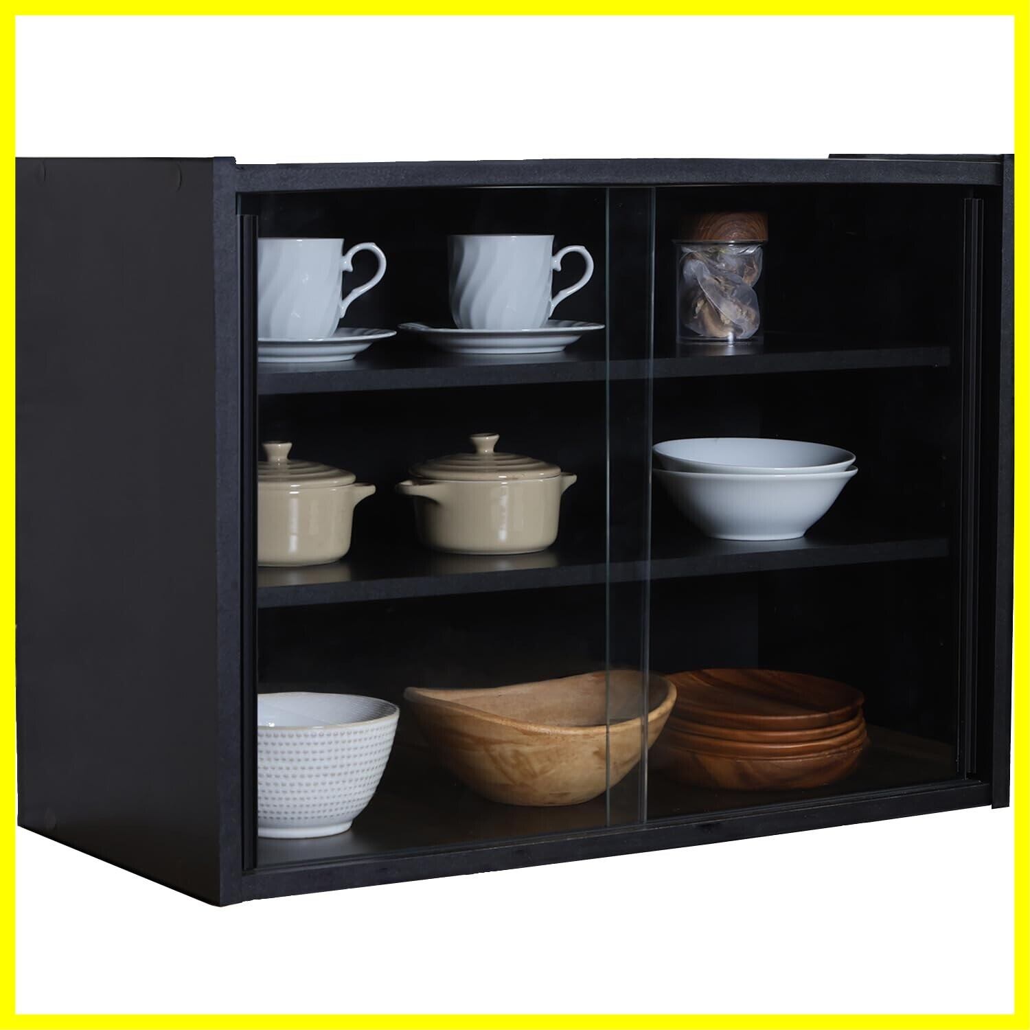 不二貿易 食器棚 キッチン収納 幅60×奥行29×高さ44cm ブラック ガラス扉 可動棚 組立品 99699