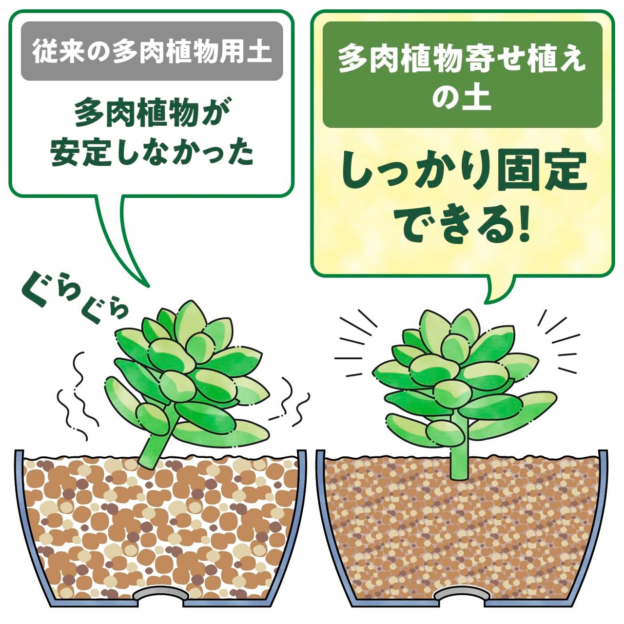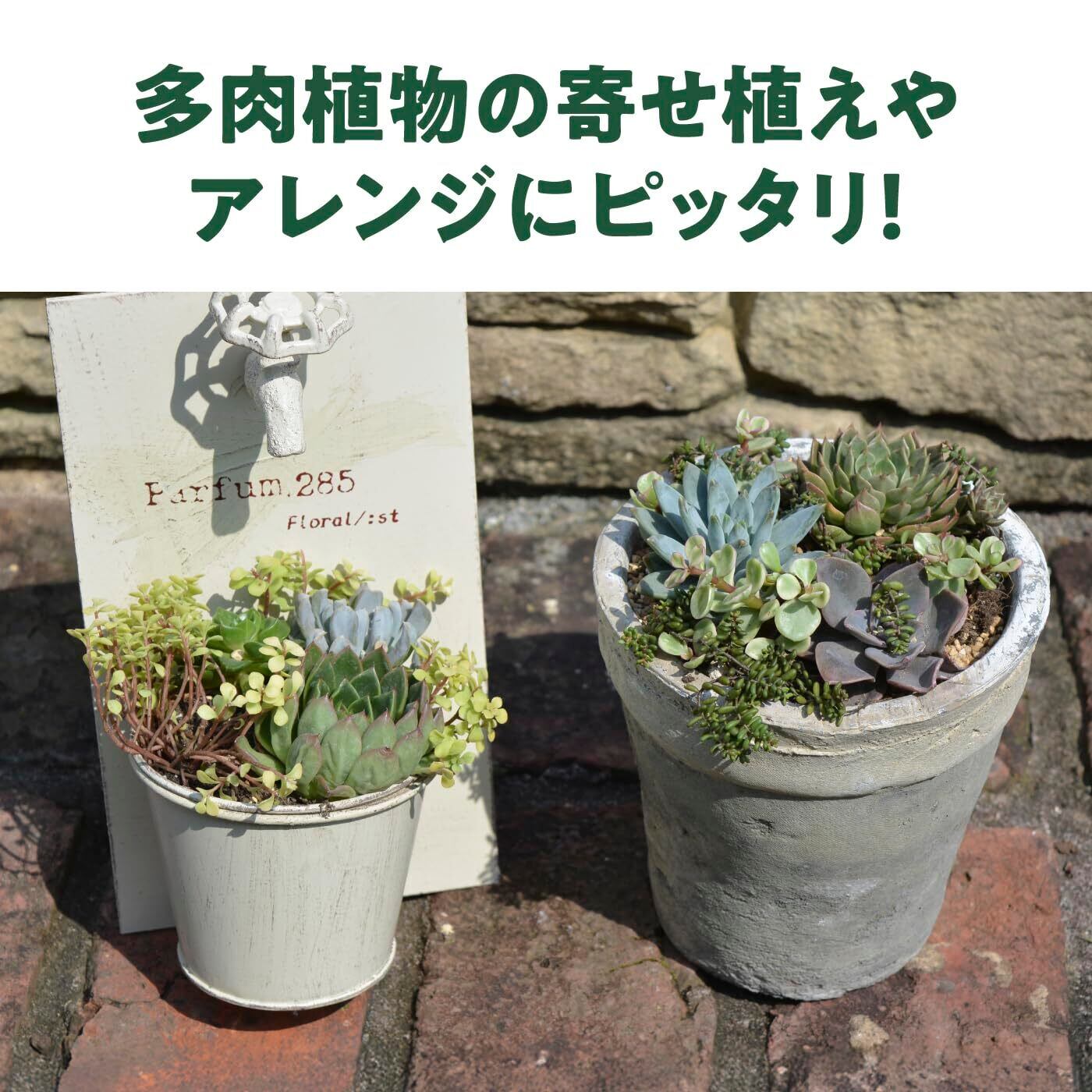 多肉の寄せ植えに最適な固まる土「ネルソル」付き。水やりをすると固定されます