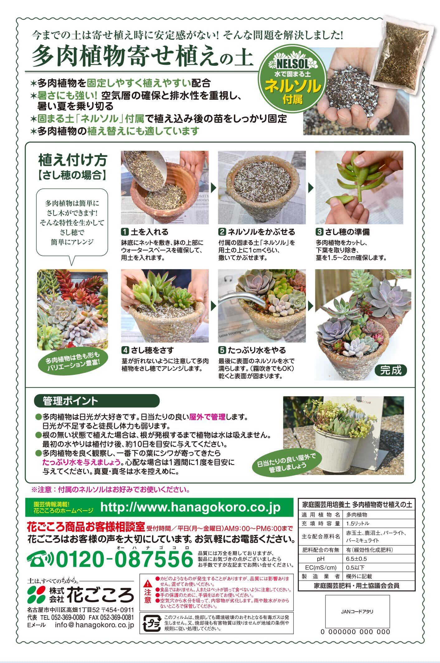 花ごころ 多肉植物寄せ植えの土 水で固まる土「ネルソル」付属 5L