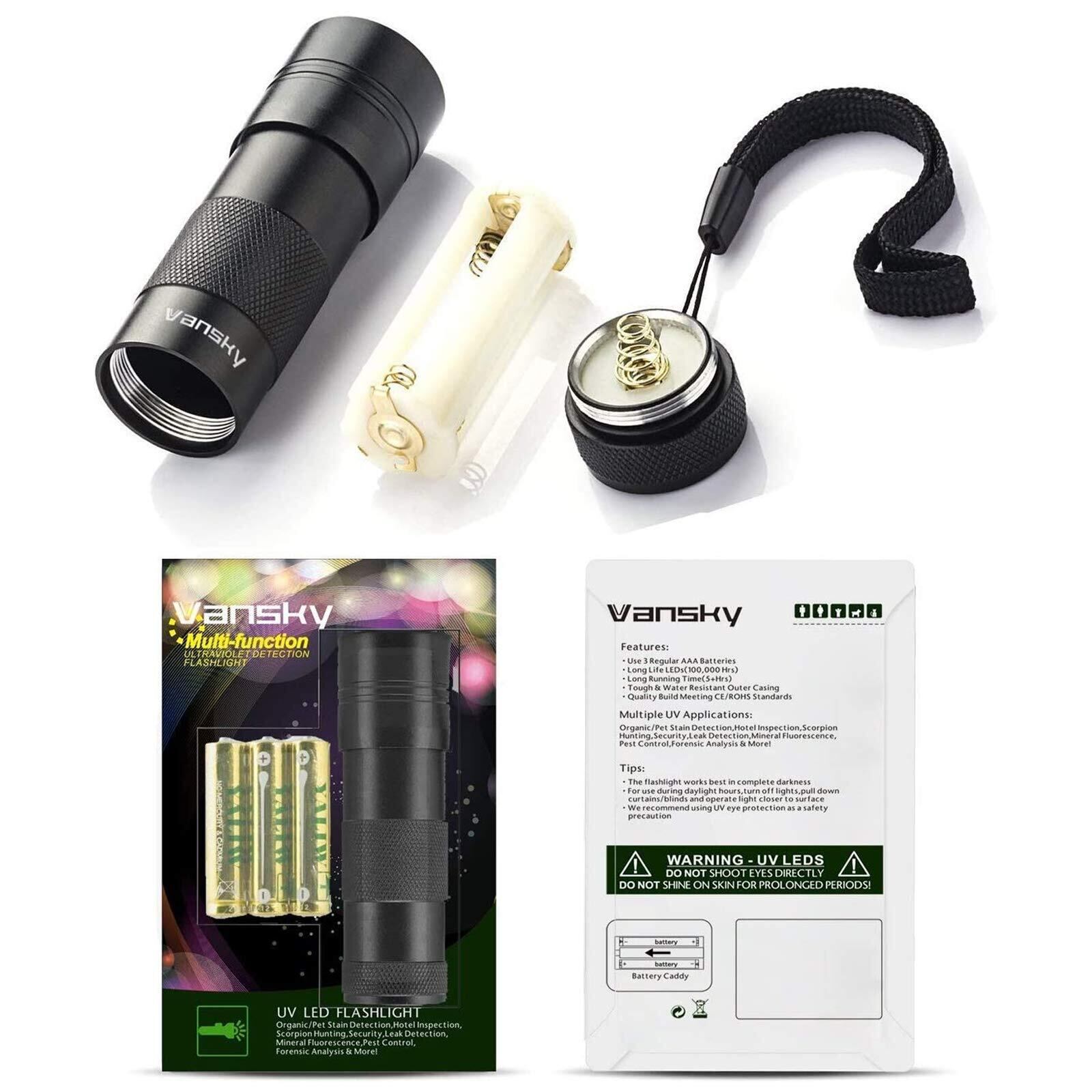 Vansky 12LED 紫外線 ブラックライト UVライト 紫外線 ライト レジン用硬化ライト 目には見えない汚れに対策に (ブラック)