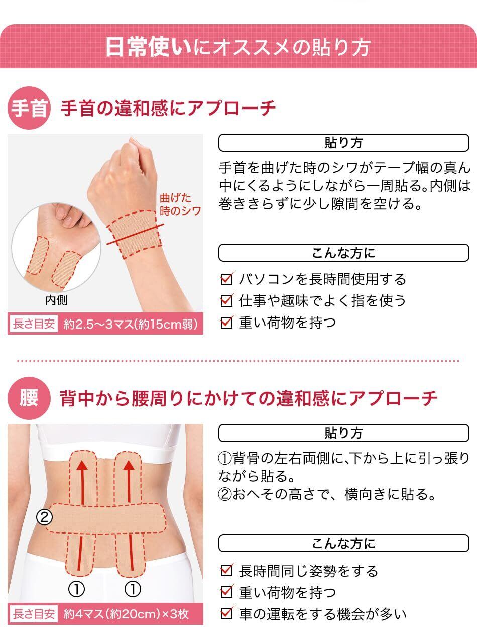 撥水タイプで水や汗に強く、伸縮性にも優れているので、関節のテーピングにもオススメ。
