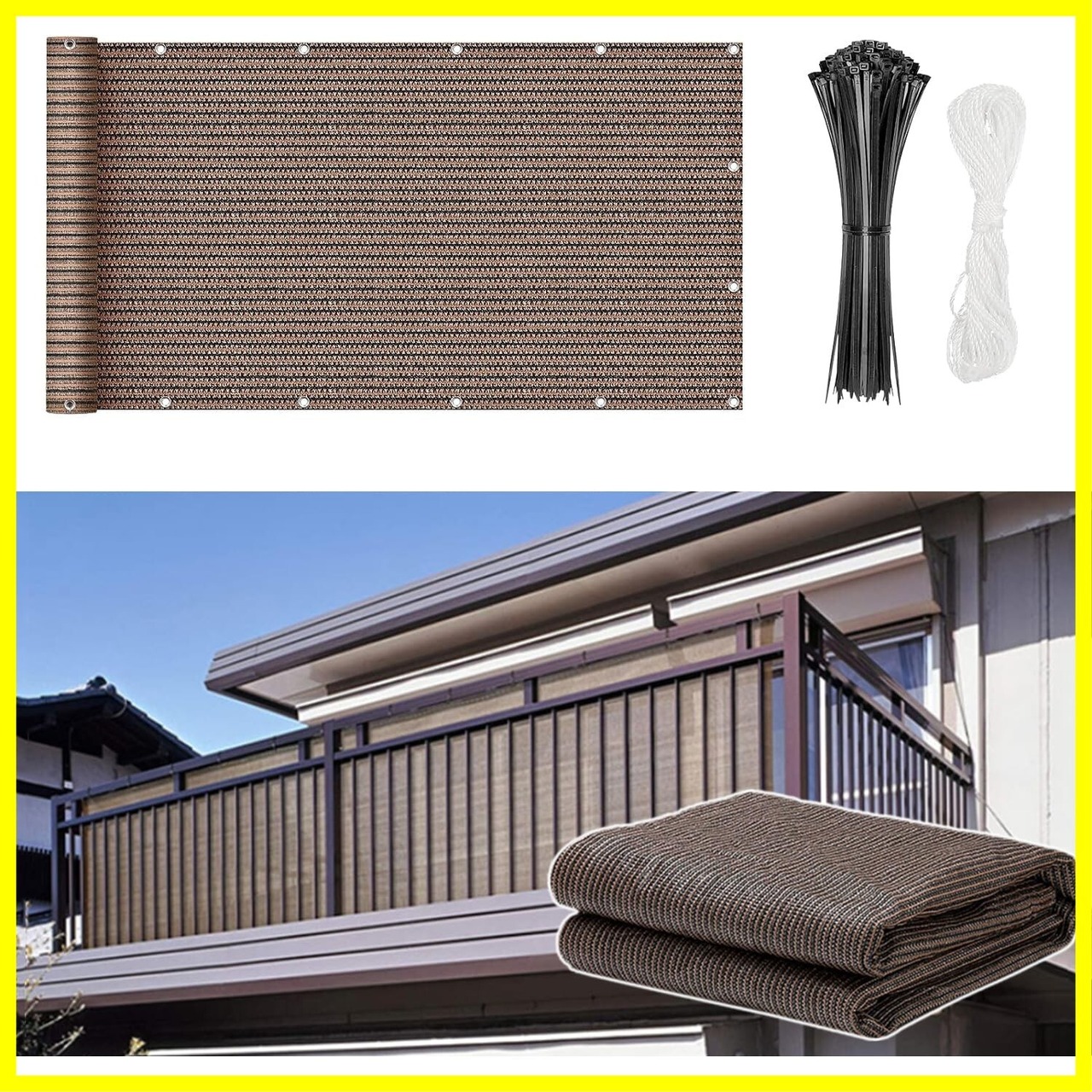 ベランダ 目隠し ベランダ目隠し シェード オーニング 高密度ポリエチレン 濃い色で目隠しバルコニーシェード 強度UP UVカット 風通し良い プライバシー保護 日除けシェード モカ色 遮光ネット 家 窓 マンション (モカ, 600x100cm)
