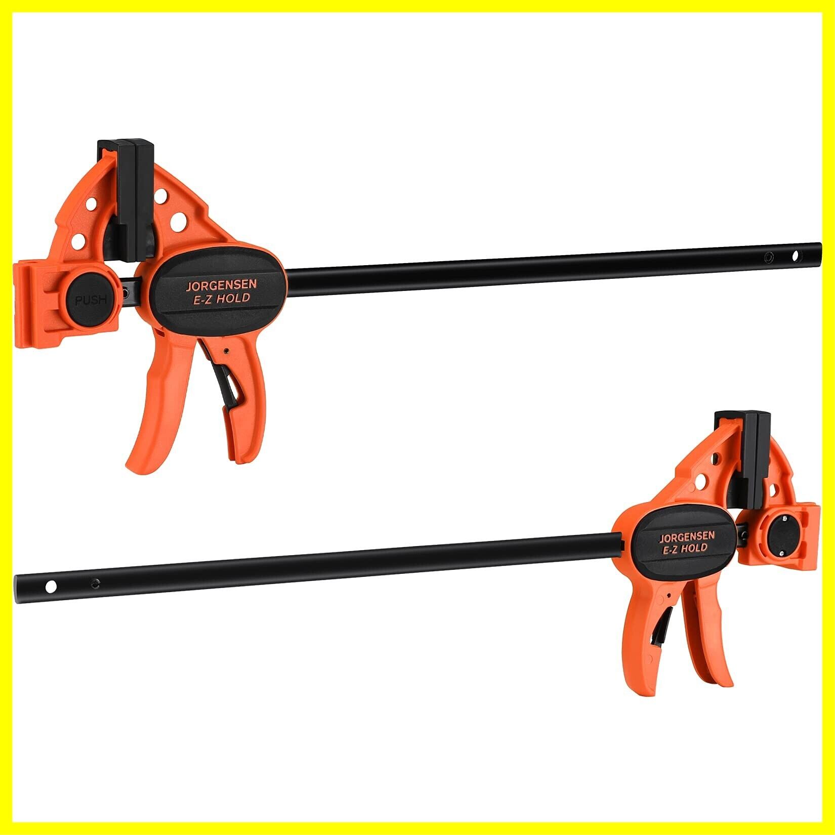 JORGENSEN クランプ Fクランプ クイックバークランプ 300mm 2本組 最大締付力約68kg 1セット3役 クイックリリースレバー 滑り止め 樹脂保護パッド付き 木材 強力固定 接着 溶接 切削 DIY工具 オレンジ、ブラック